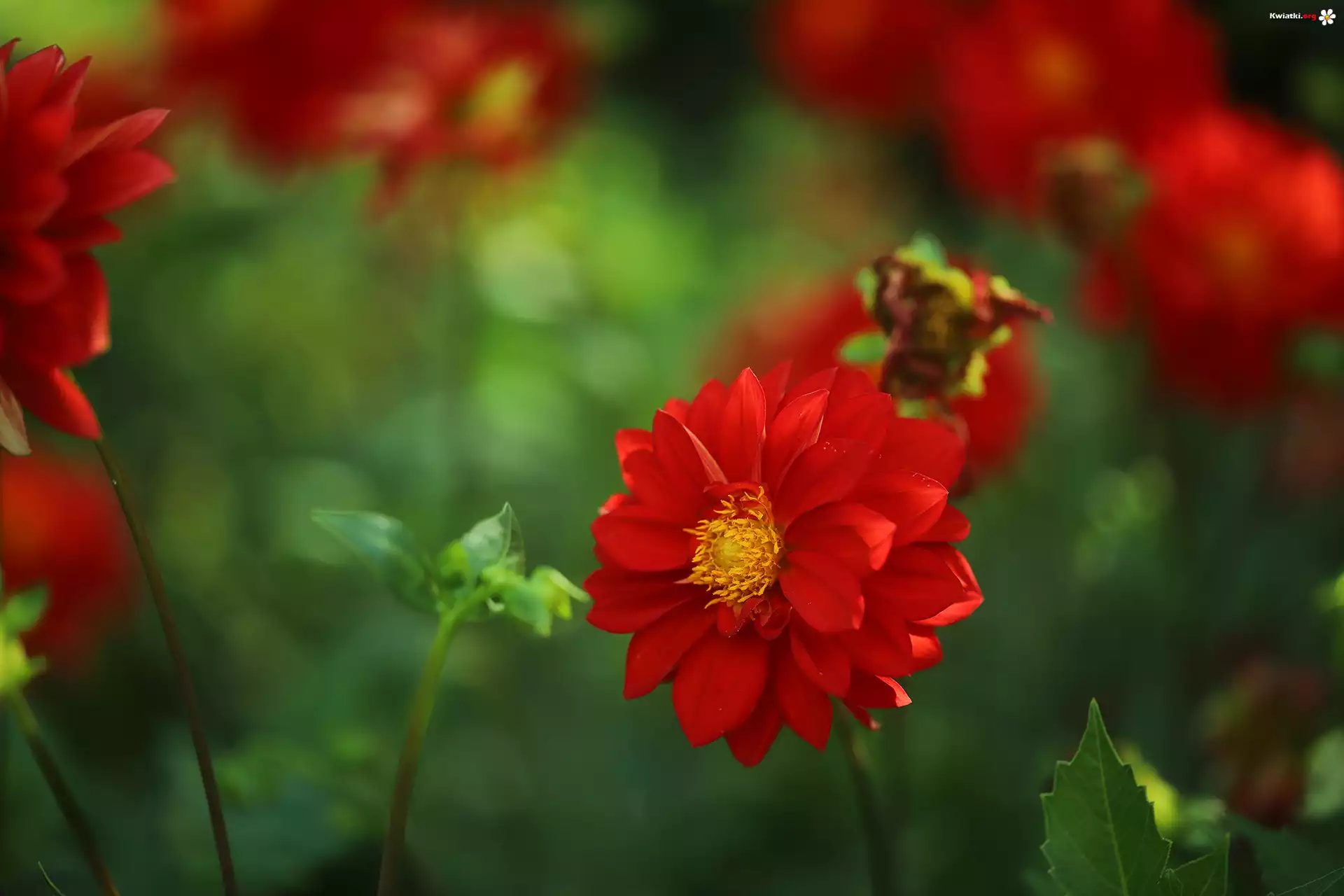 Czerwona, Dalia, Kwiat, Zbliżenie - Zdjęcia