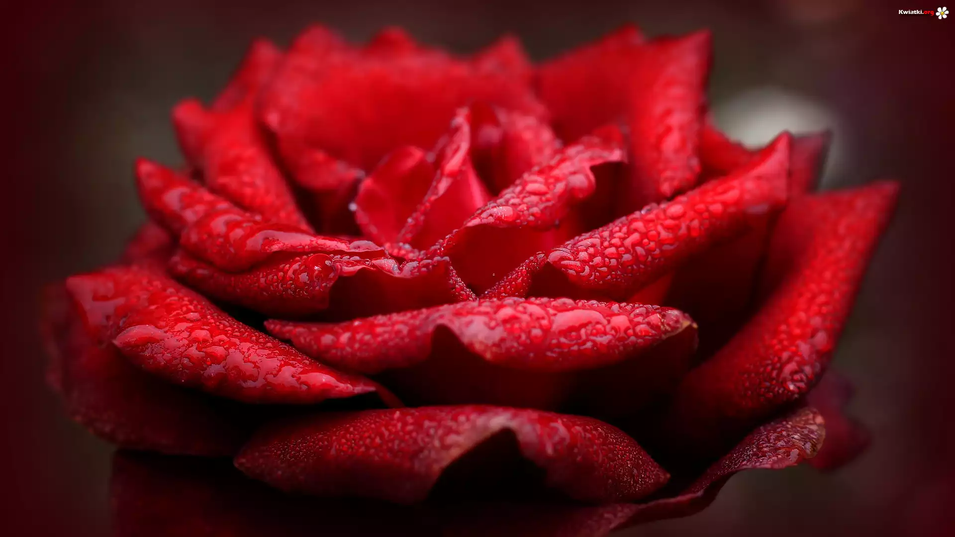 Kwiat Czerwona, Róża, Krople, Mokre, Płatki