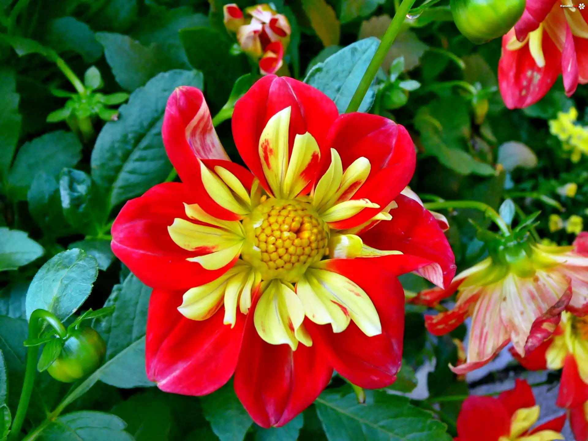 Żółto, Czerwona, Dalia - Zdjęcia
