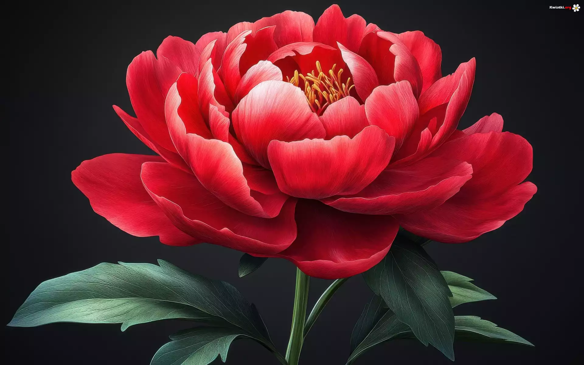 Kwiat Kwiat, Czerwona, Piwonia, Liście, AI