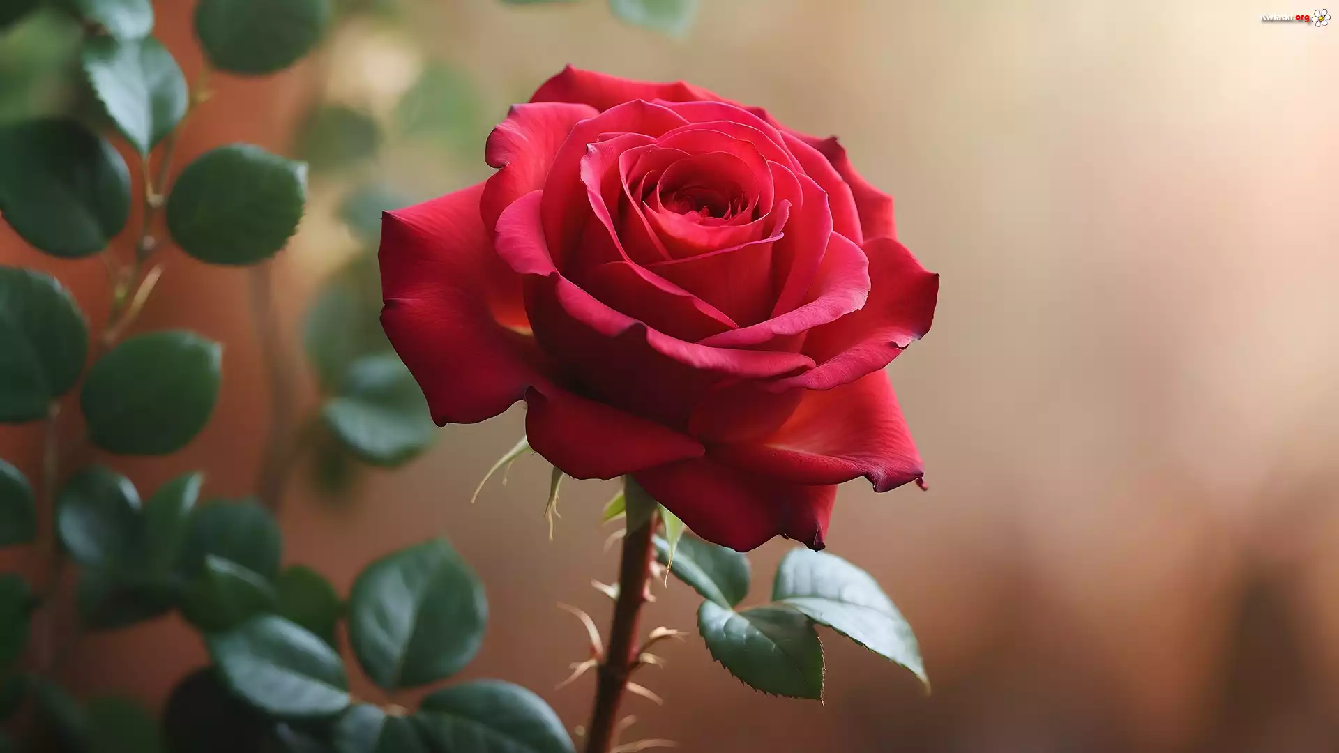 Rozkwitająca, Czerwona, Róża, Zielone, Listki - Zdjęcia