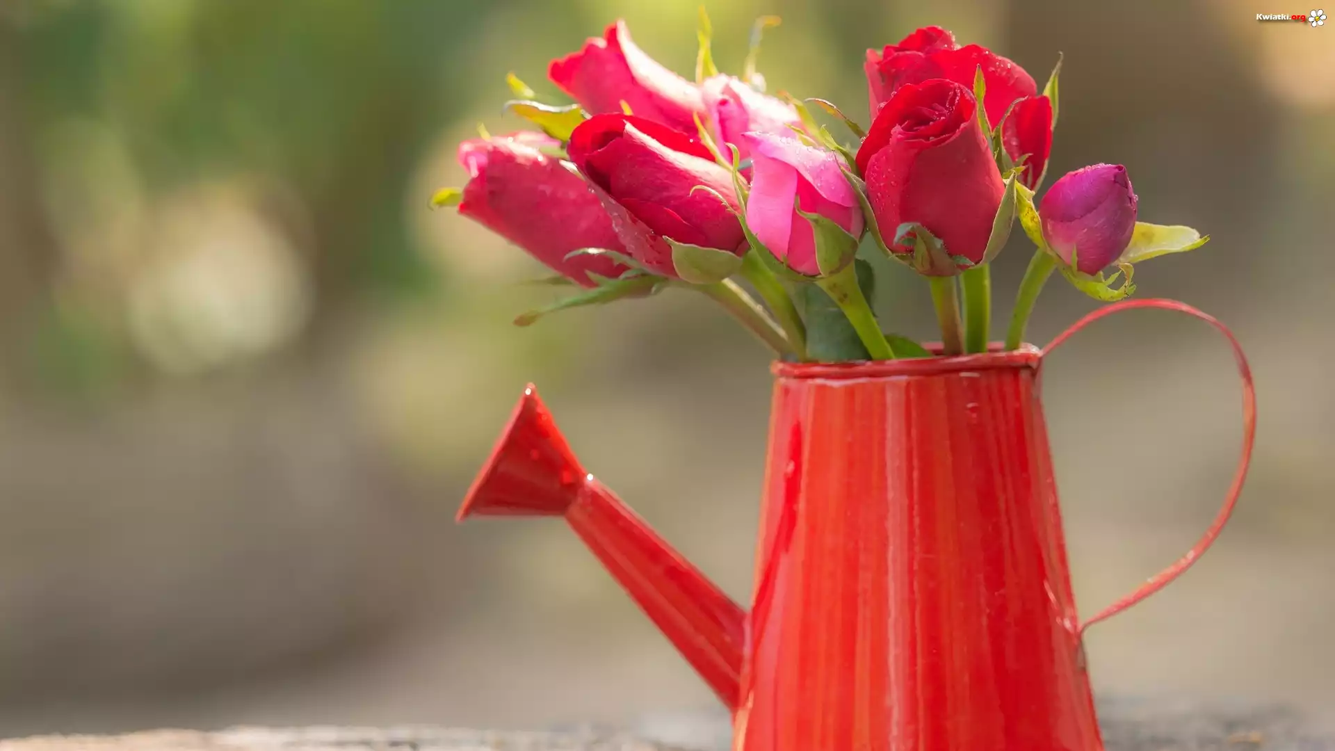 Czerwona, Konewka, Czerwone, Róże, Pąki - Zdjęcia