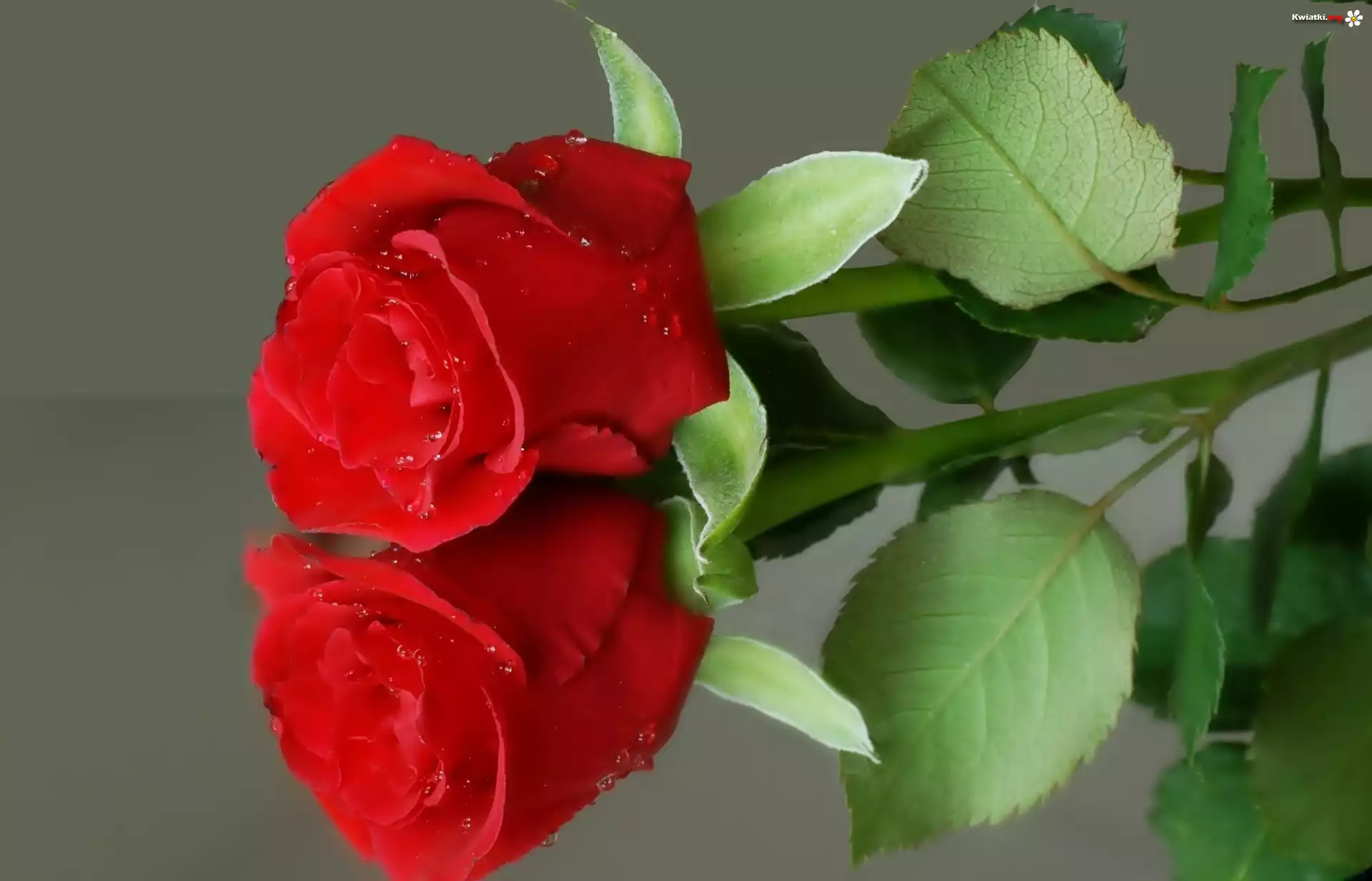 Kwiat Czerwona, Róża, Krople, Wody, Odbicie