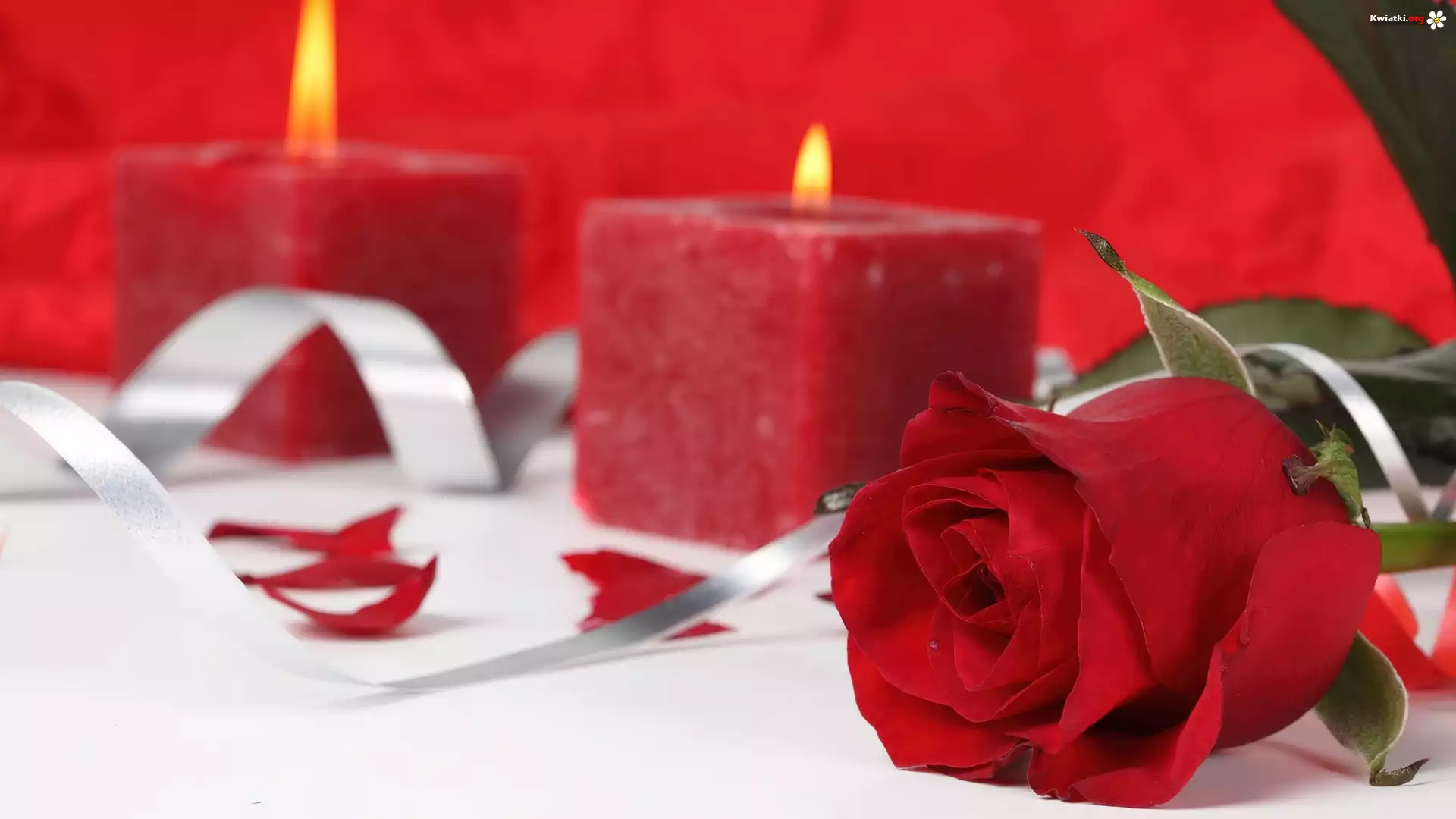 Kwiat Czerwona, Róża, Płatki, Wstążka, Świece