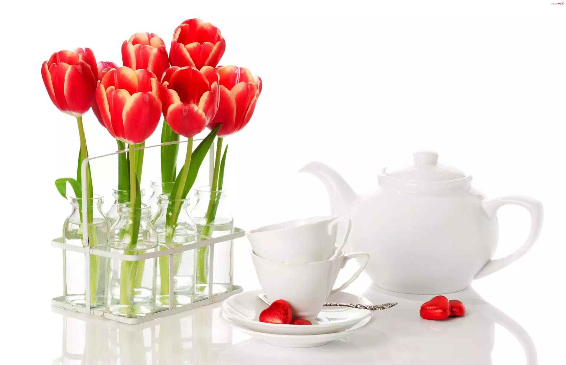 Kwiat Czerwone, Tulipany, Biała, Zastawa