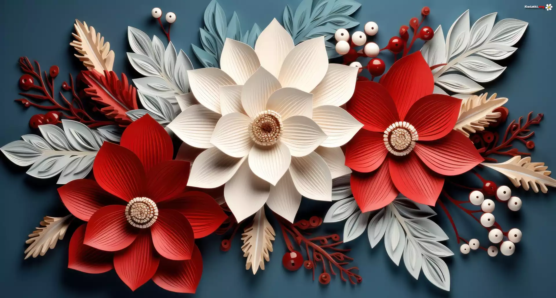 Papierowe, Czerwone, Białe, Kwiaty, Grafika - Zdjęcia