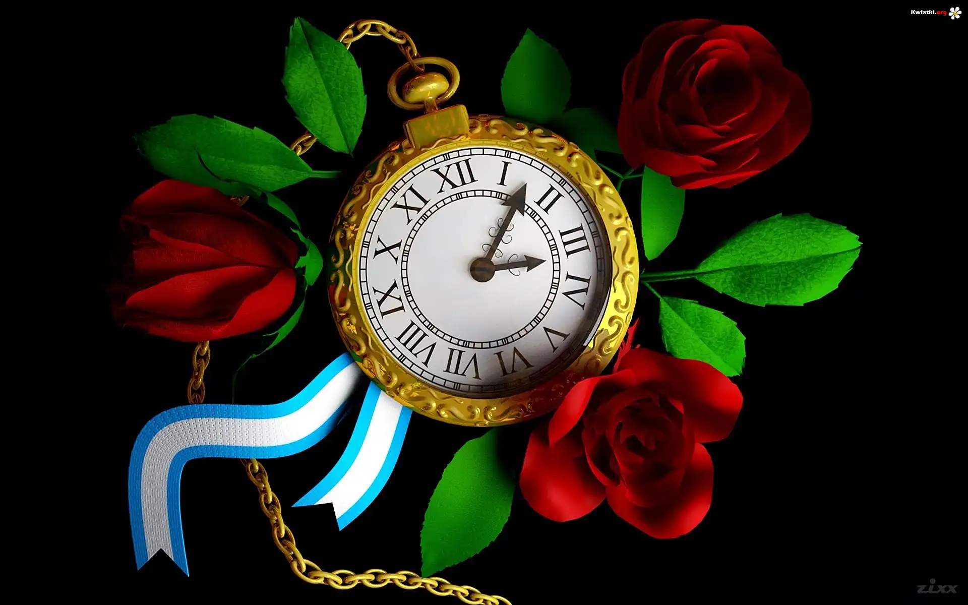Kwiat Czerwone, Róże, Złoty, Zegarek, Czarne, Tło