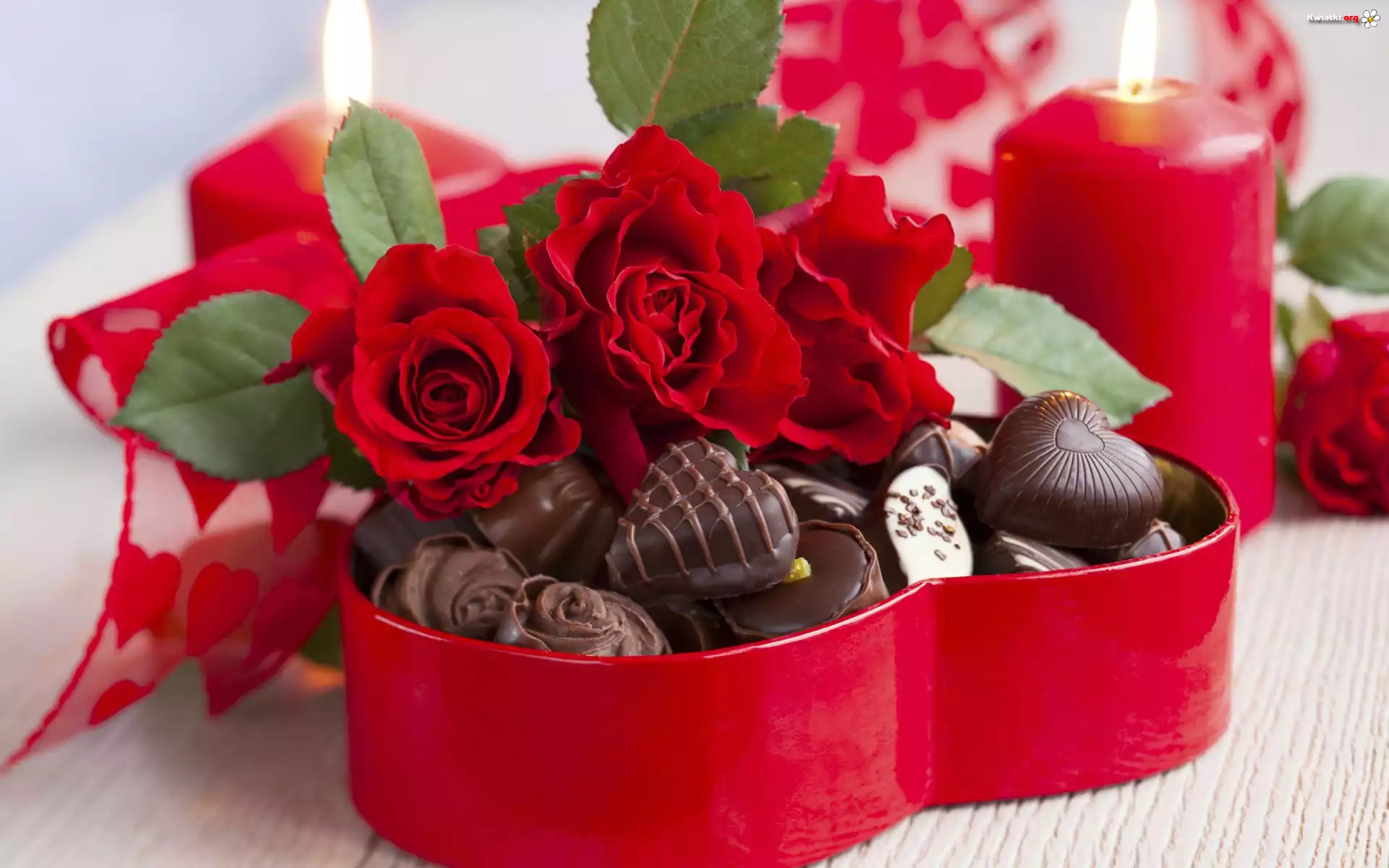 Czerwone, Róże, Słodycze, Świece, Dzień, Kobiet, Kompozycja - Zdjęcia