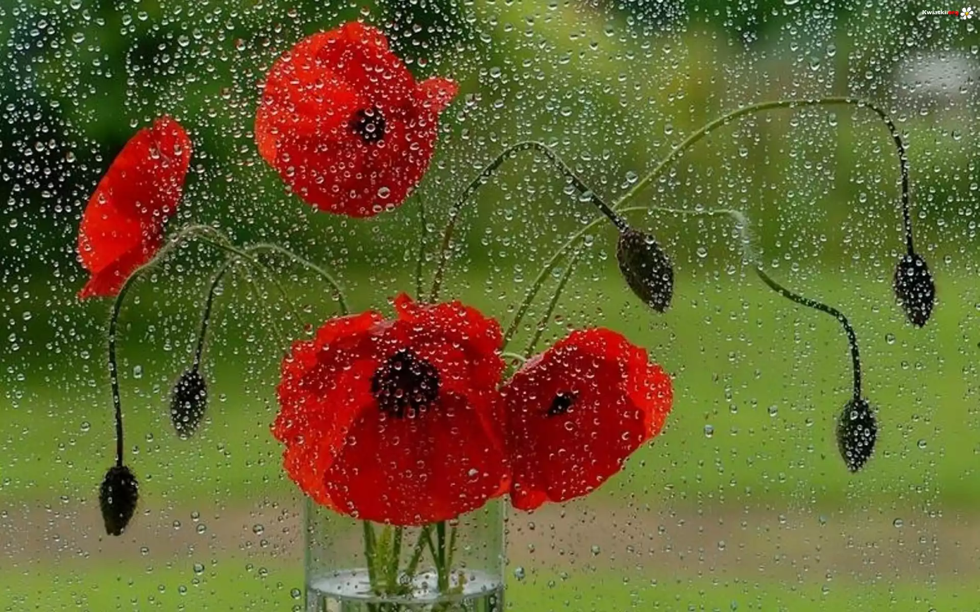 Czerwone, Maki, Krople, Wody, Flakon, Pąki - Zdjęcia