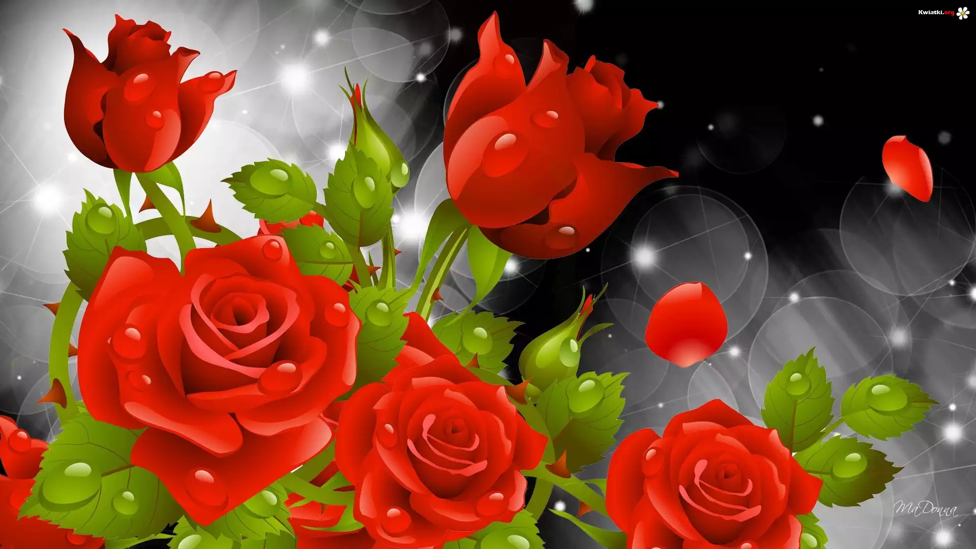 Kwiat Czerwone, Róże, Krople, Wody, Grafika, Komputerowa