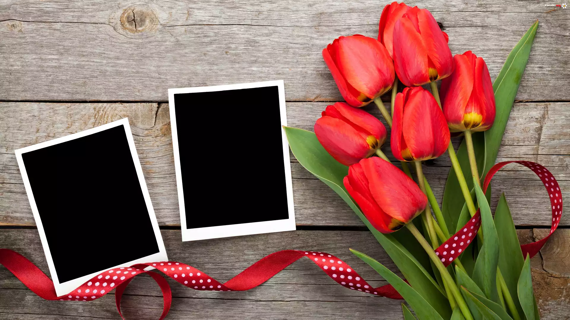 Czerwone, Tulipany, Kartki, Wstążka - Zdjęcia