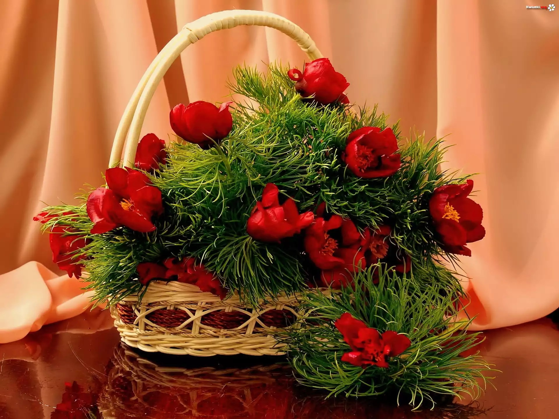 Koszyk, Czerwone, Kwiatki - Zdjęcia