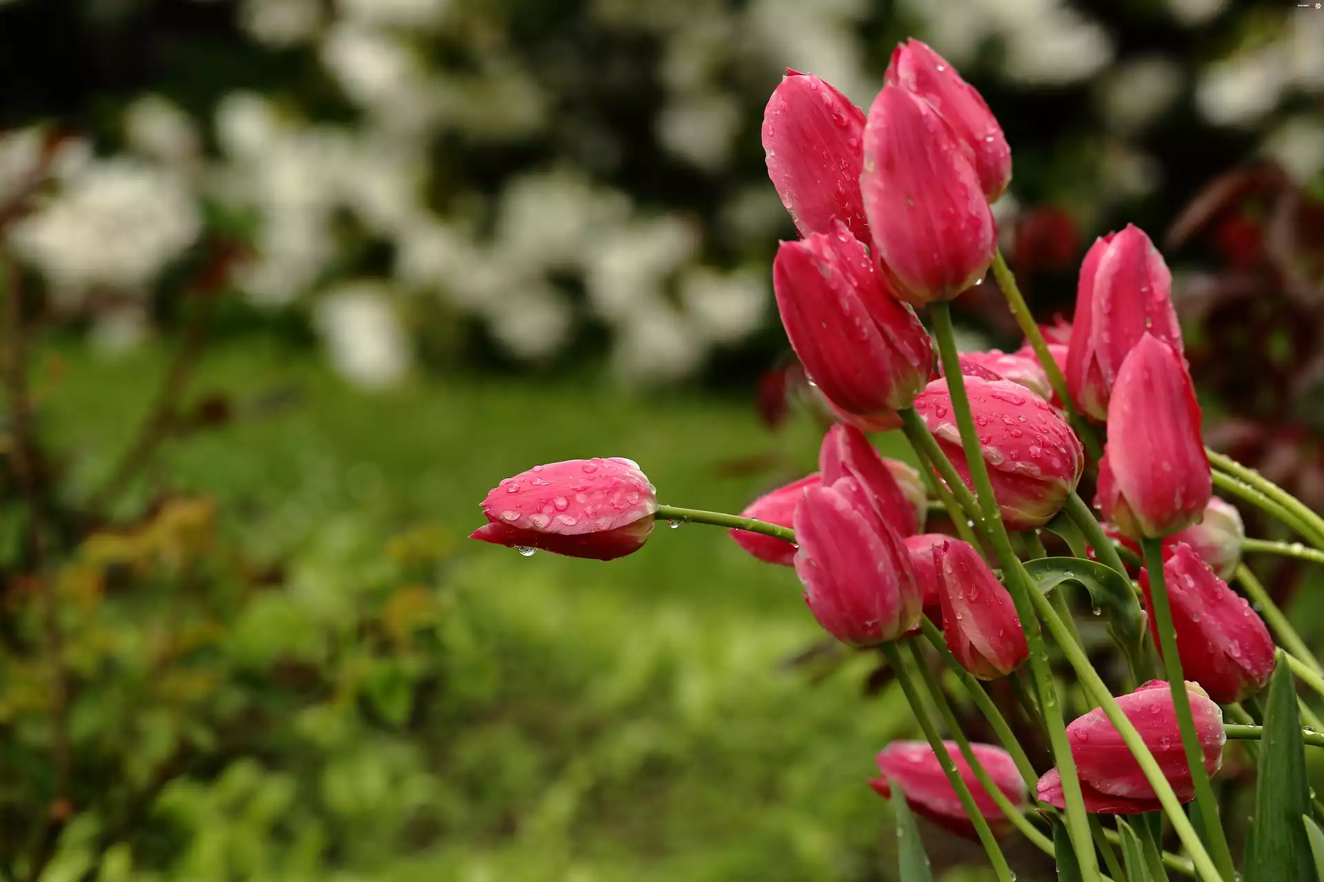 Kwiat Czerwone, Tulipany, Deszczowe, Krople, Ogród