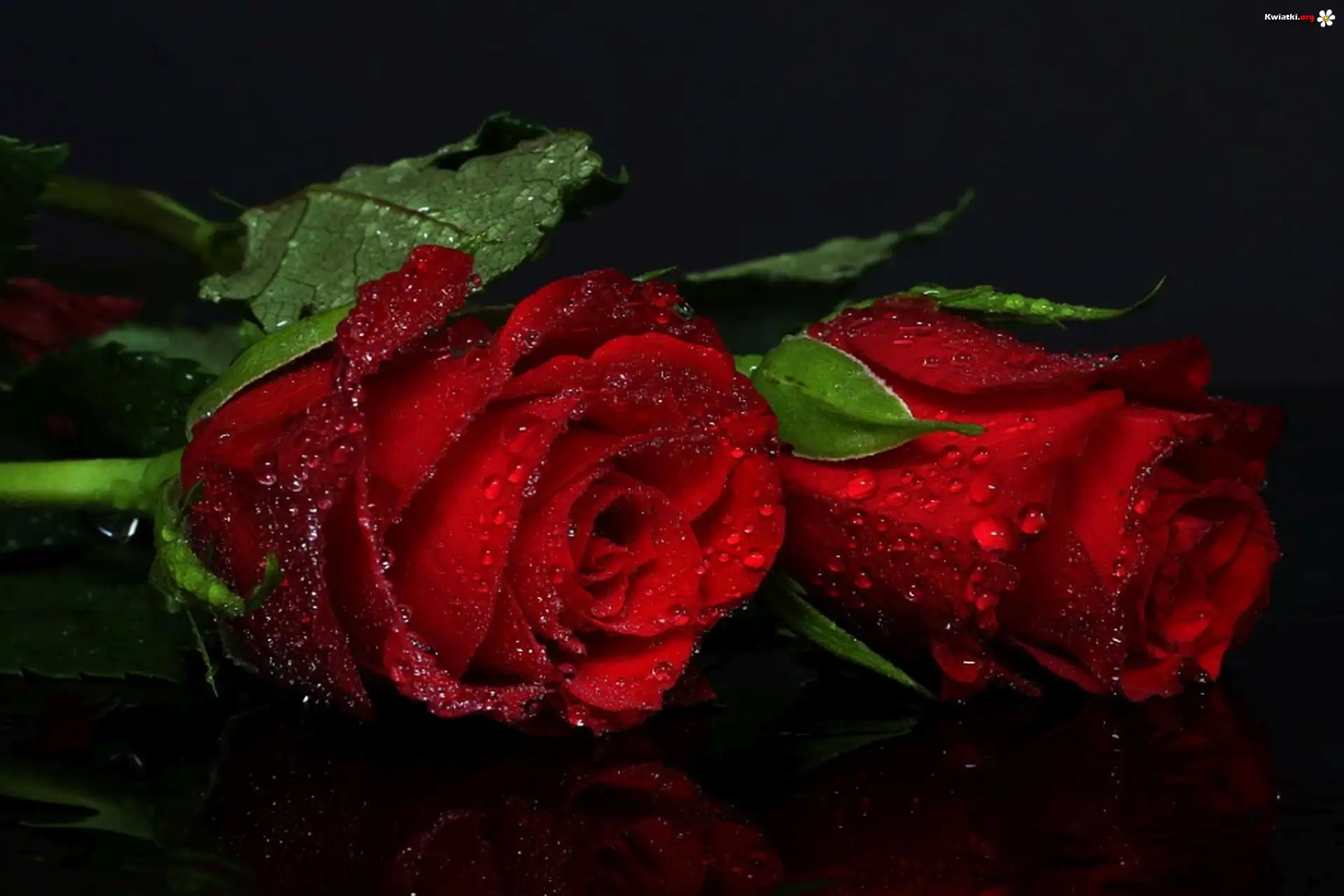 Czerwone, Róże, Krople, Wody - Zdjęcia