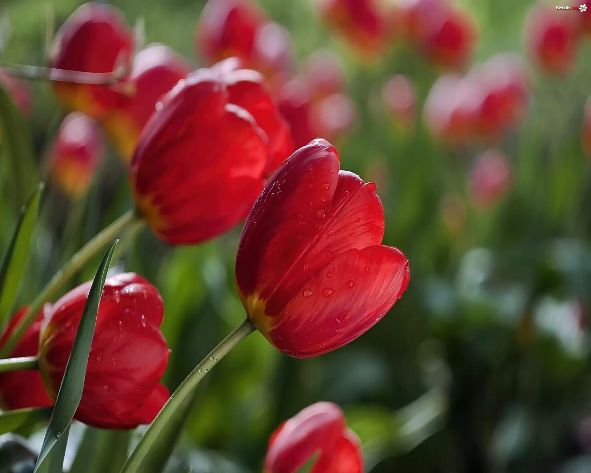 Kwiat Czerwone, Tulipany, Krople, Wody
