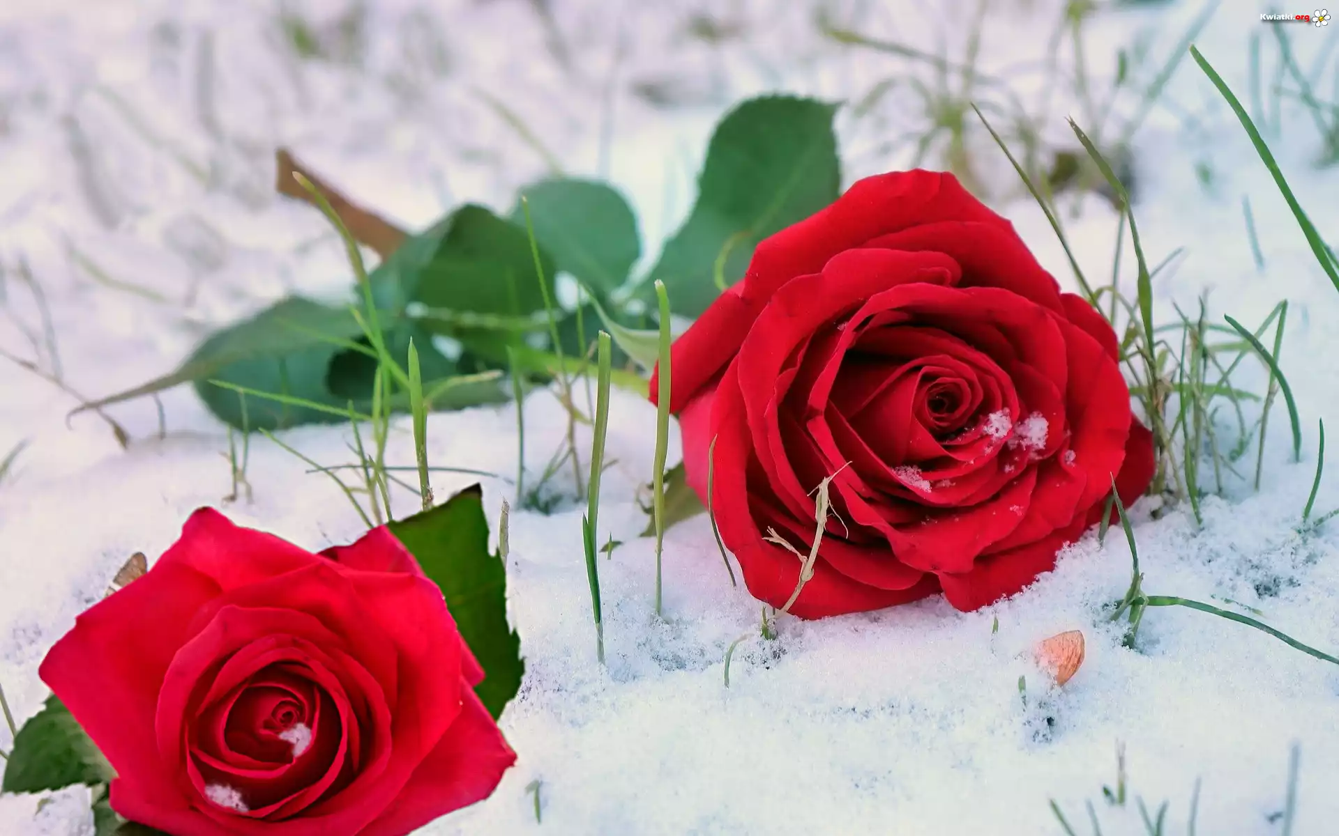 Śnieg, Kwiaty, Dwie, Czerwone, Róże - Zdjęcia