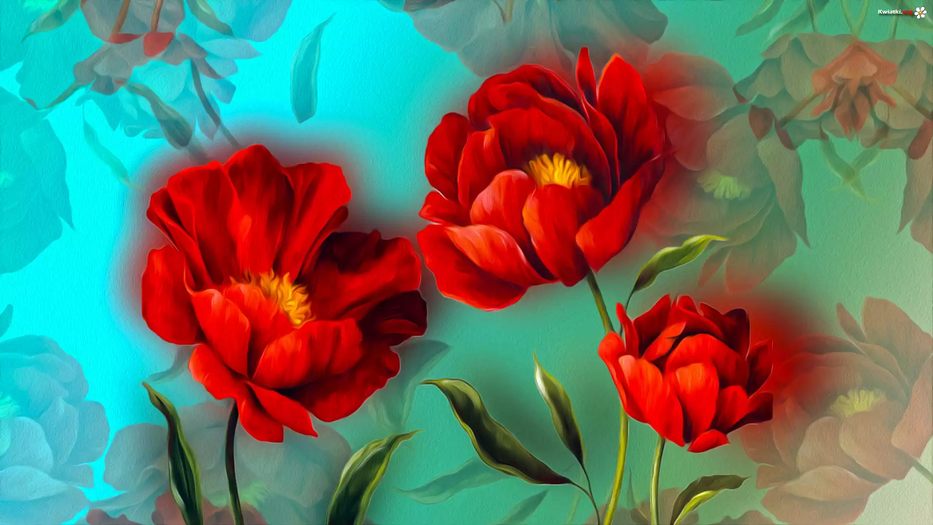 Kwiaty, Czerwone, Grafika - Zdjęcia