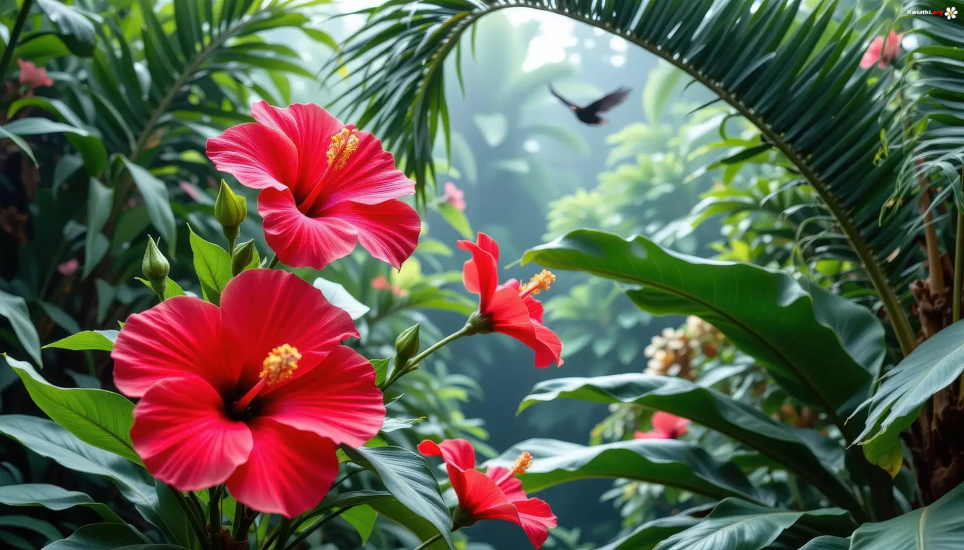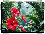 Rozwinięte, Czerwone, Kwiaty, Hibiskus, Liście - Zdjęcia
