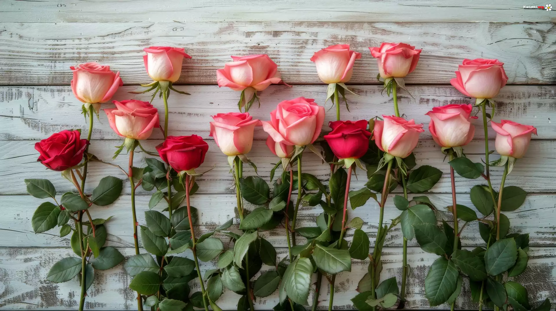 Kompozycja, Kwiaty, Biało-czerwone, Róże, Listki - Zdjęcia