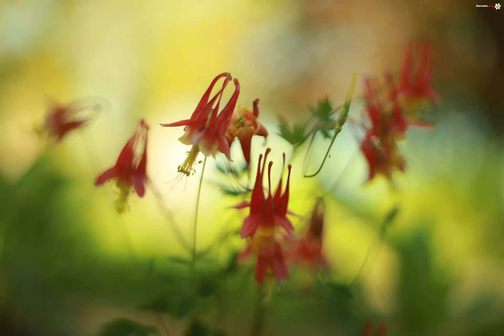 Czerwone, Kwiaty, Orliki kanadyjskie, Little Lanterns - Zdjęcia