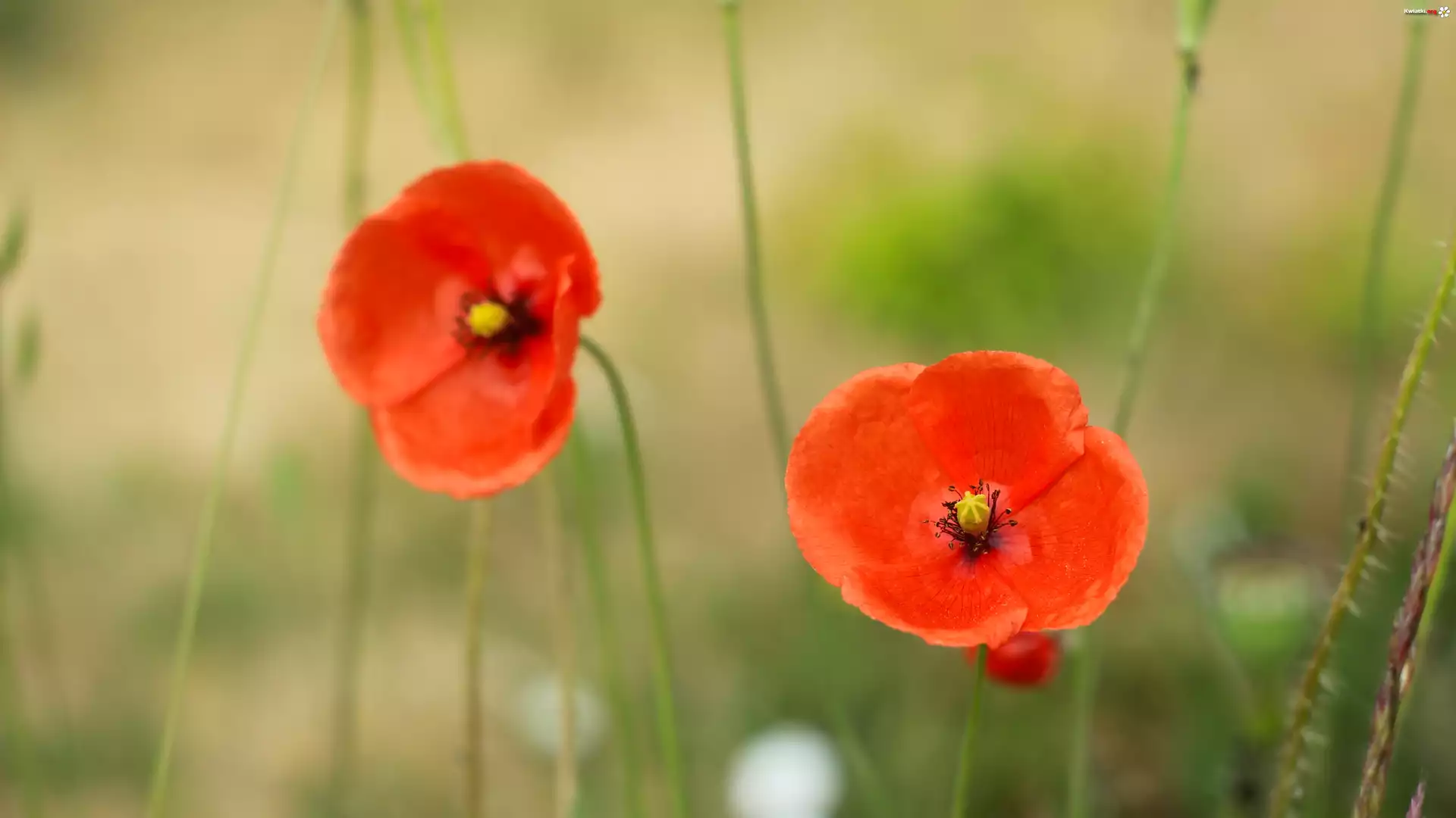 Kwiat Dwa, Czerwone, Maki, Rozmyte tło