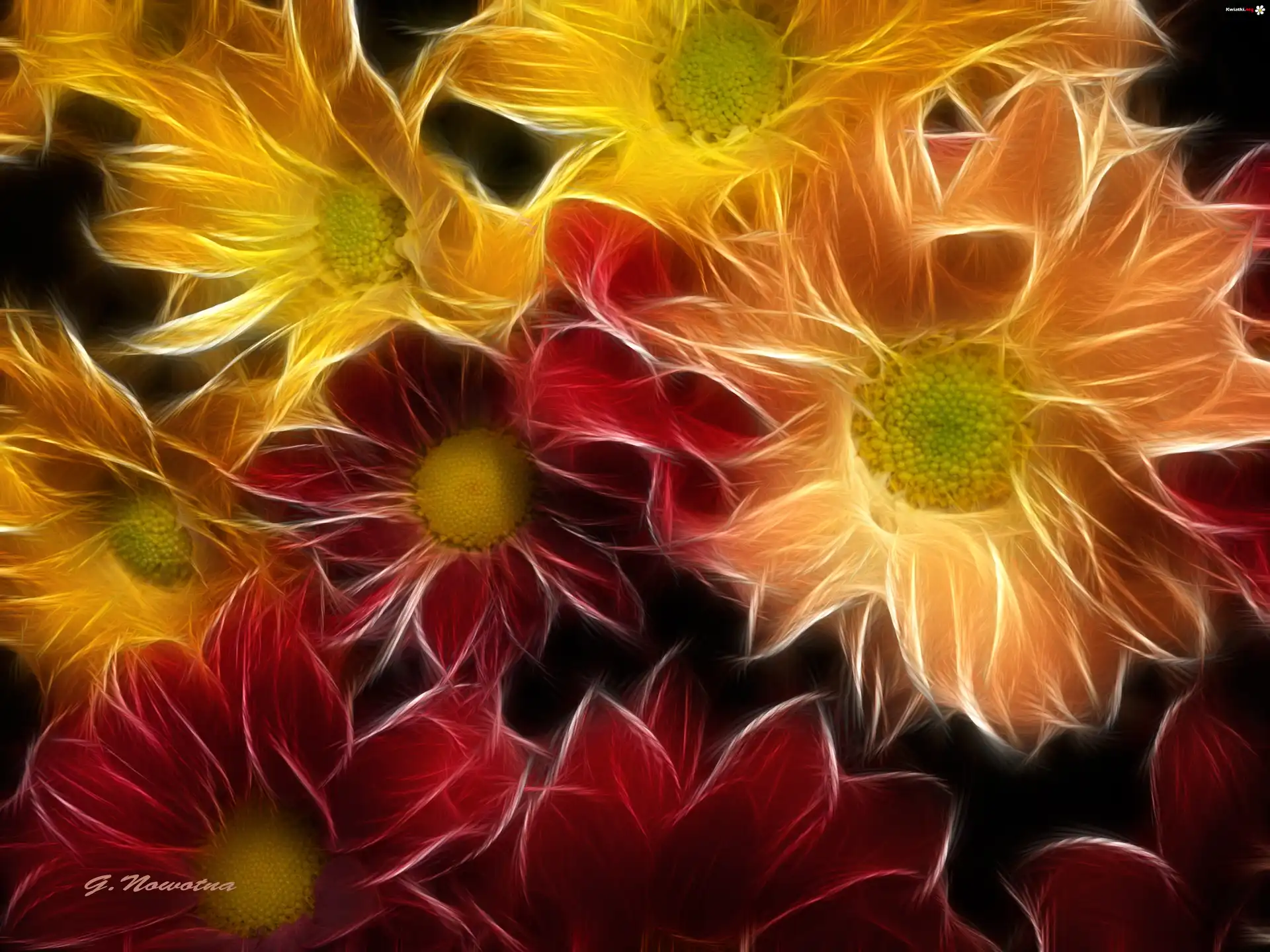 Czerwone, Żółte, Margaretki, Grafika - Zdjęcia