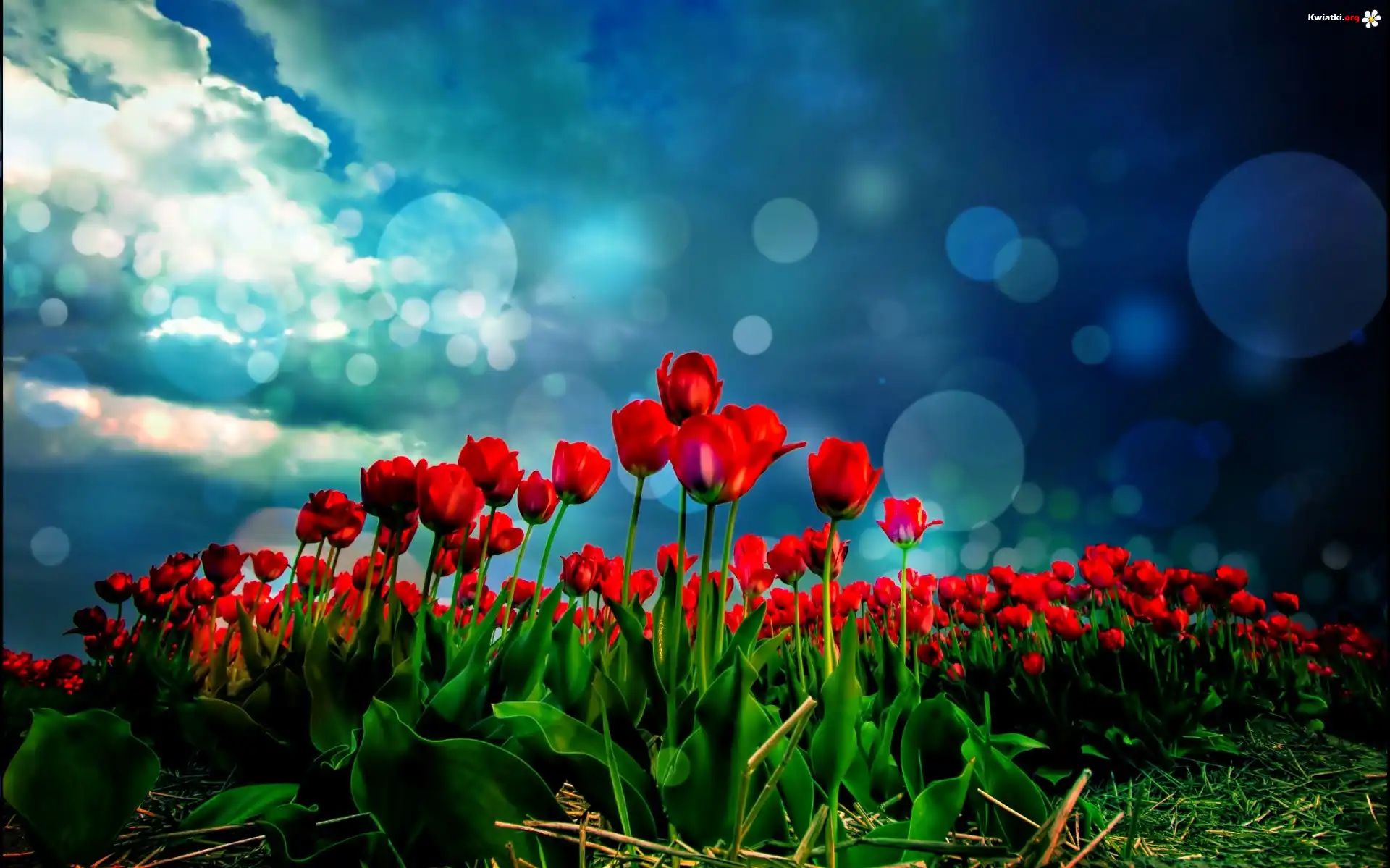 Kwiat Czerwone, Tulipany, Niebo, Blask