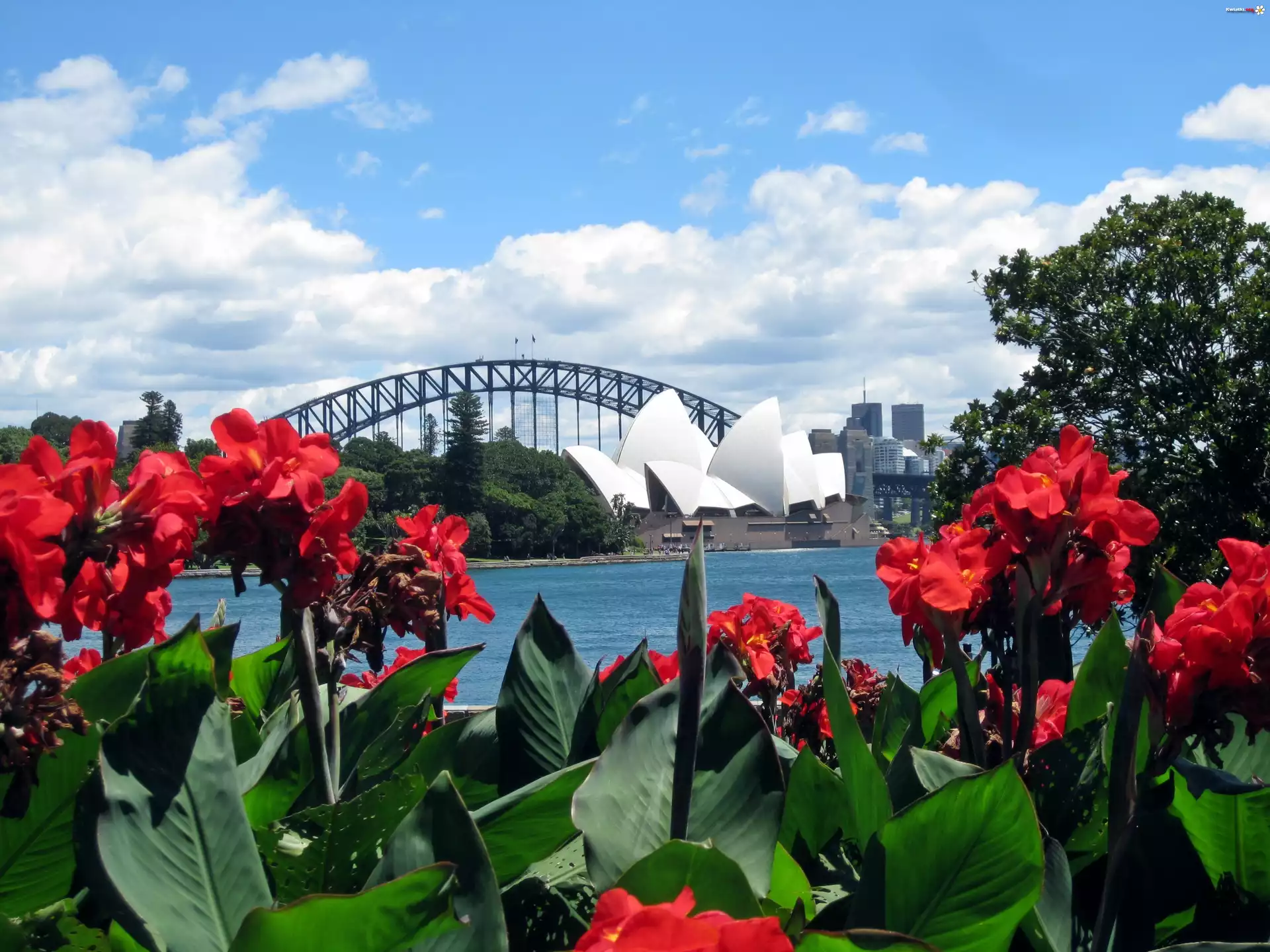 Czerwone, Kwiaty, Panorama, Sydney - Zdjęcia