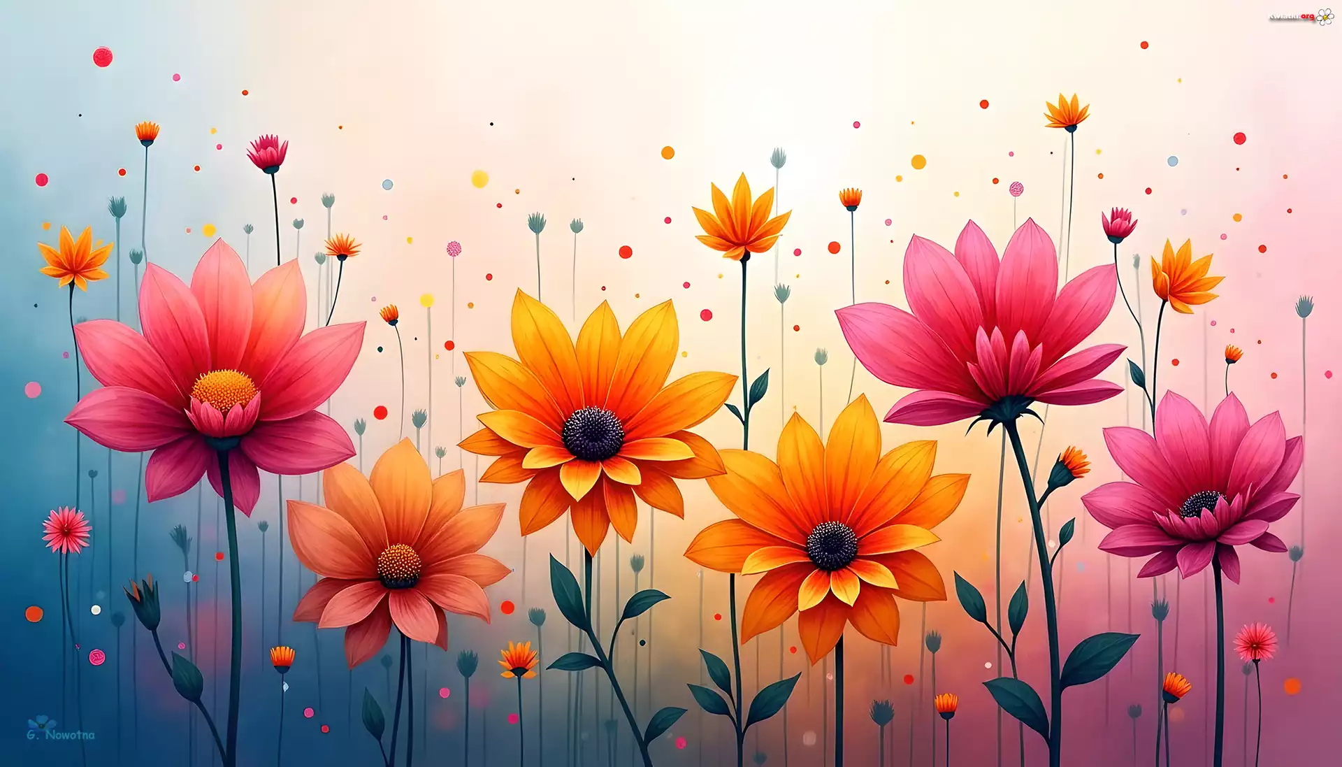 Kolorowe, Czerwone, Pomarańczowe, Kwiaty, Grafika - Zdjęcia
