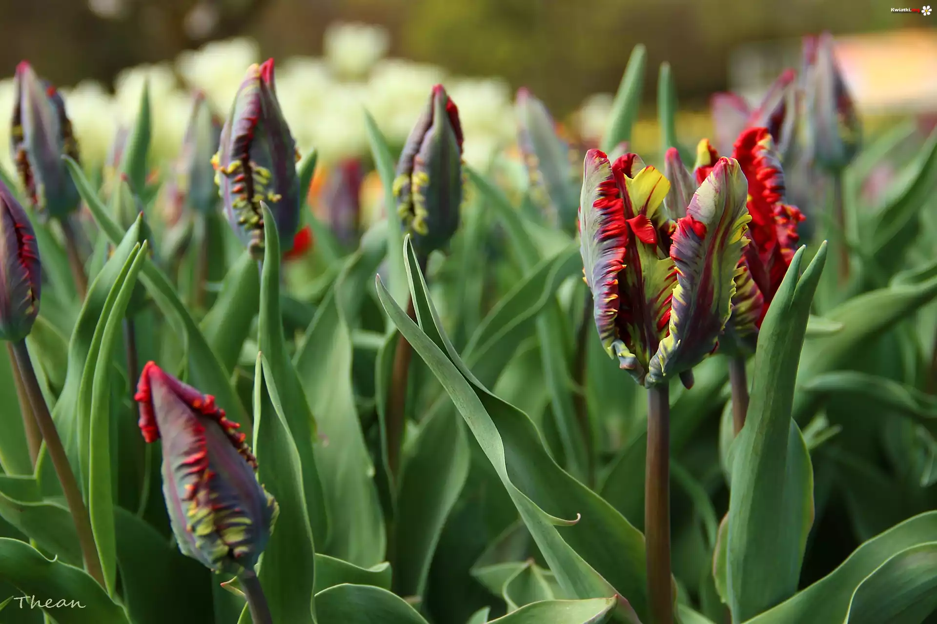 Kwiat Czerwone, Tulipany, Postrzępione, Płatki