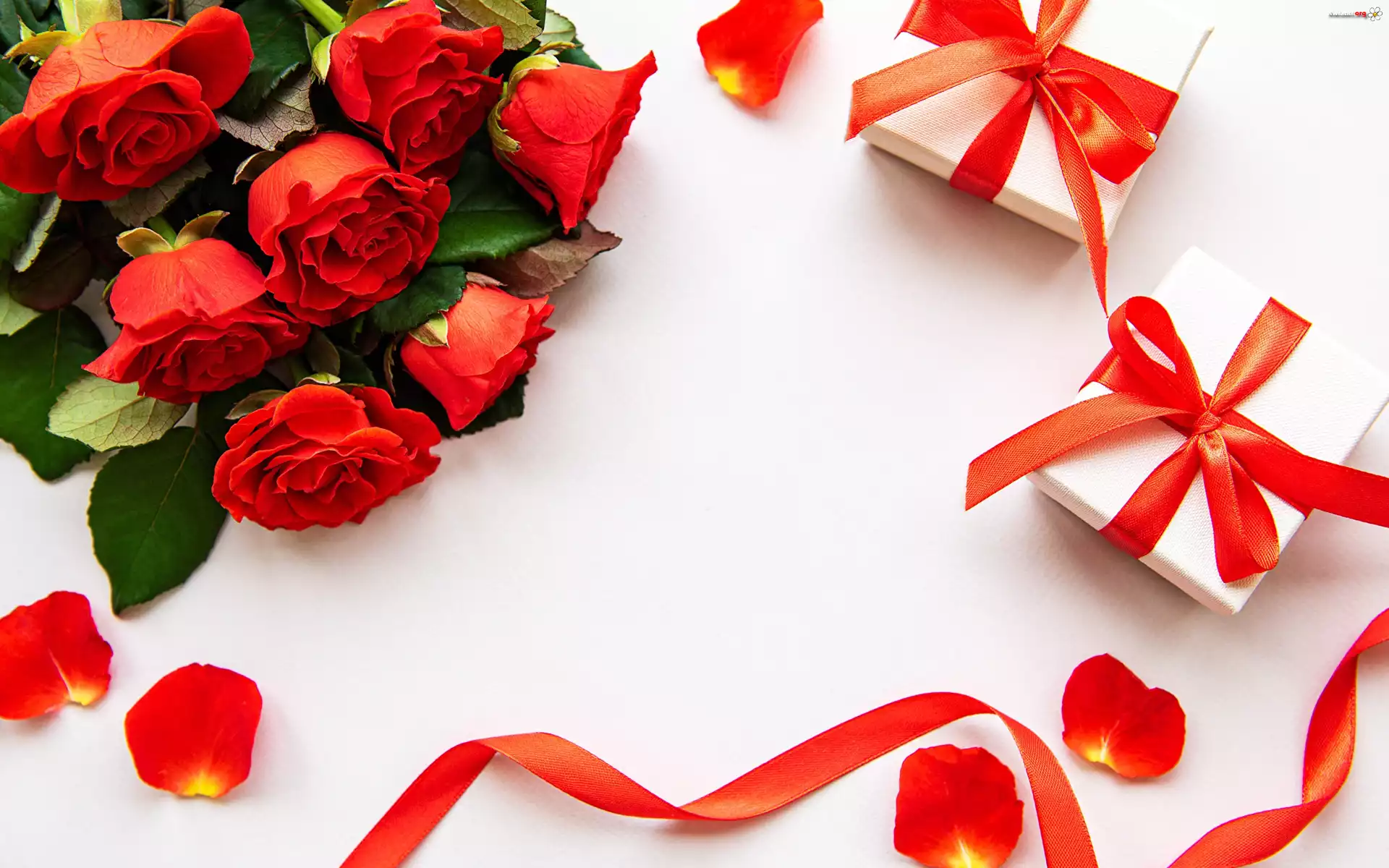 Kwiat Czerwone, Róże, Bukiet, Dwa, Prezenty, Wstążka