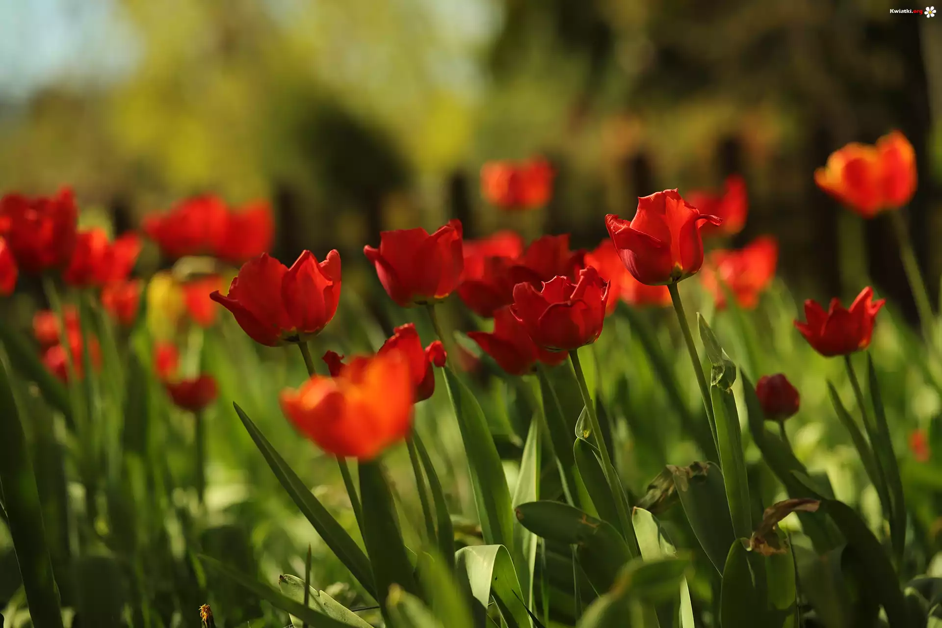Czerwone, Tulipany, Kwiaty, Rozmyte tło - Zdjęcia