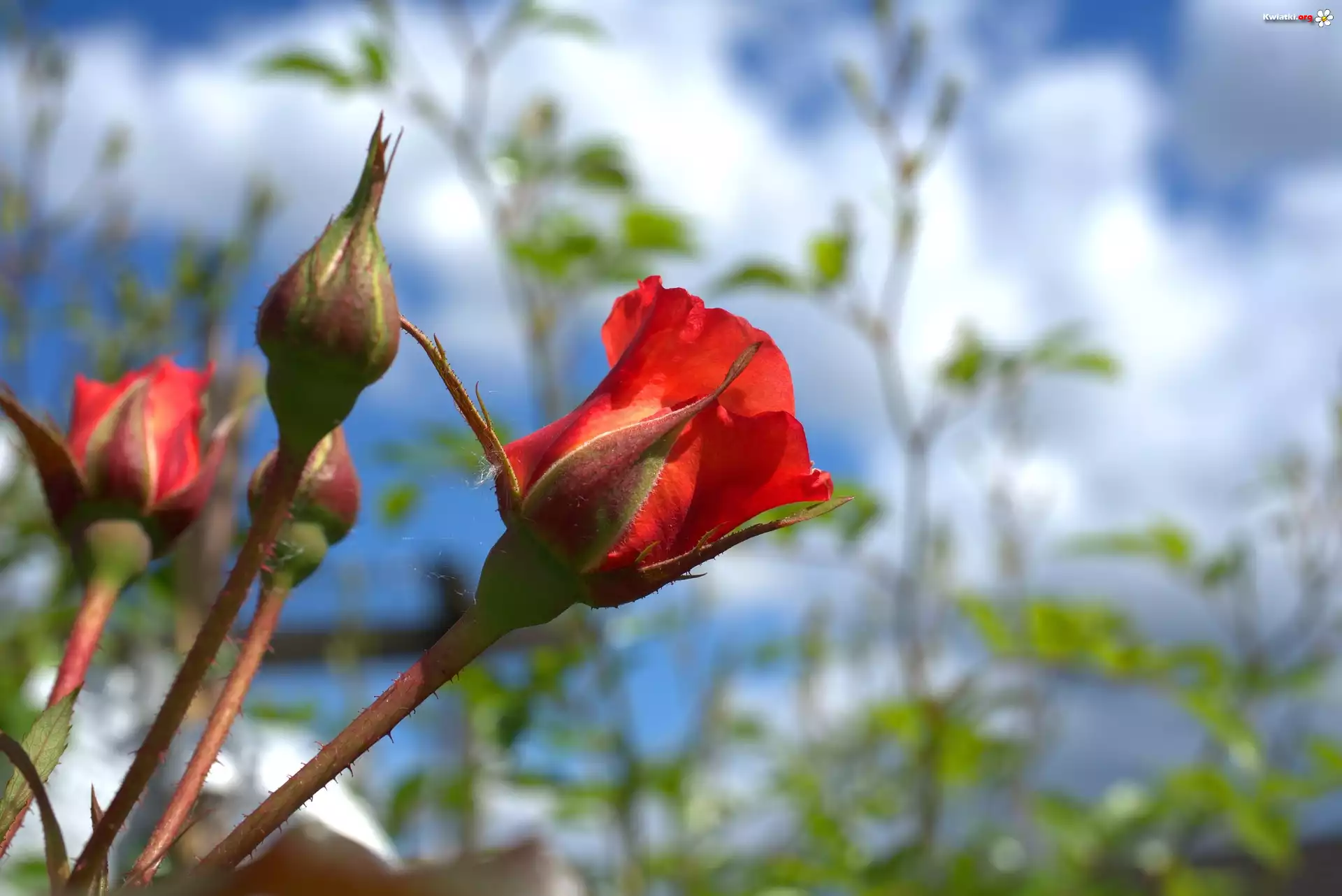 Czerwone, Róże, Pąki, Rozmyte tło - Zdjęcia
