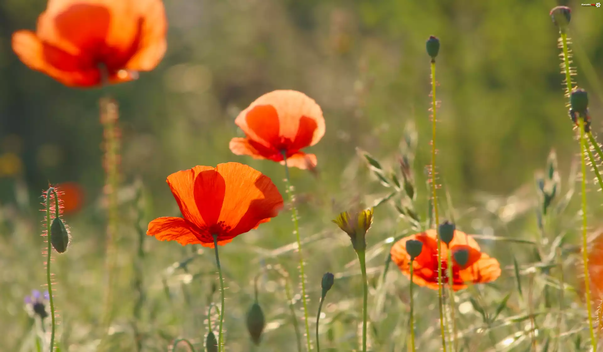 Kwiat Czerwone, Maki, Rozświetlone, Płatki