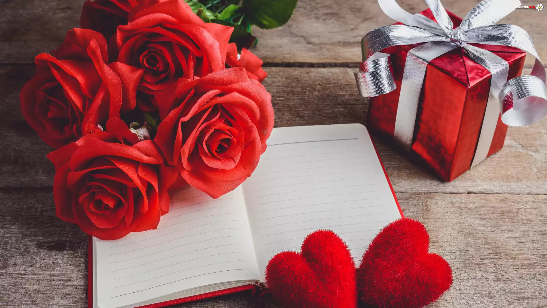 Czerwone, Róże, Bukiet, Zeszyt, Serduszka, Prezent - Zdjęcia