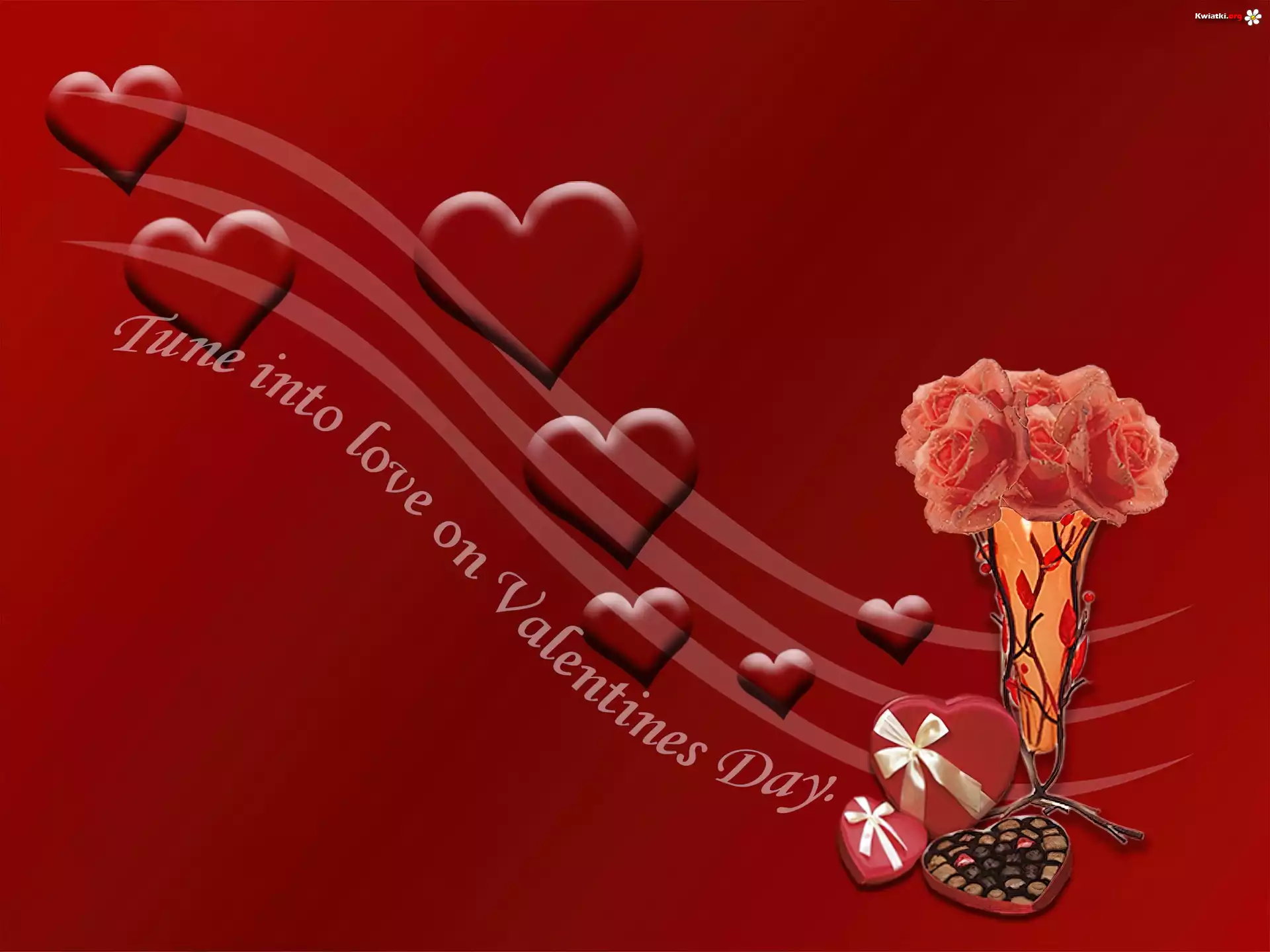Kwiat Czerwone, Serduszka, Bukiecik, Róż, Walentynki, Miłość