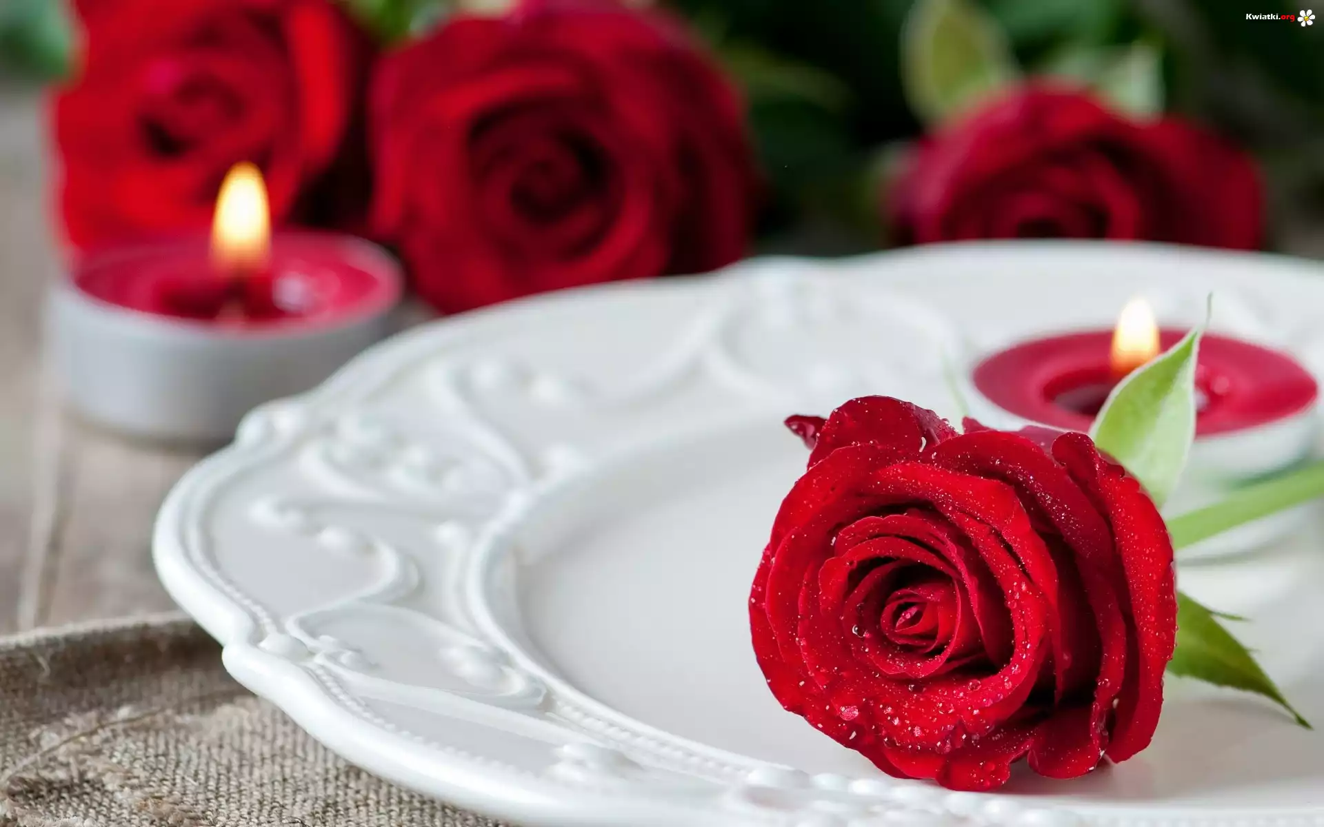 Kwiat Czerwone, Róże, Świece, Walentynki, Kompozycja