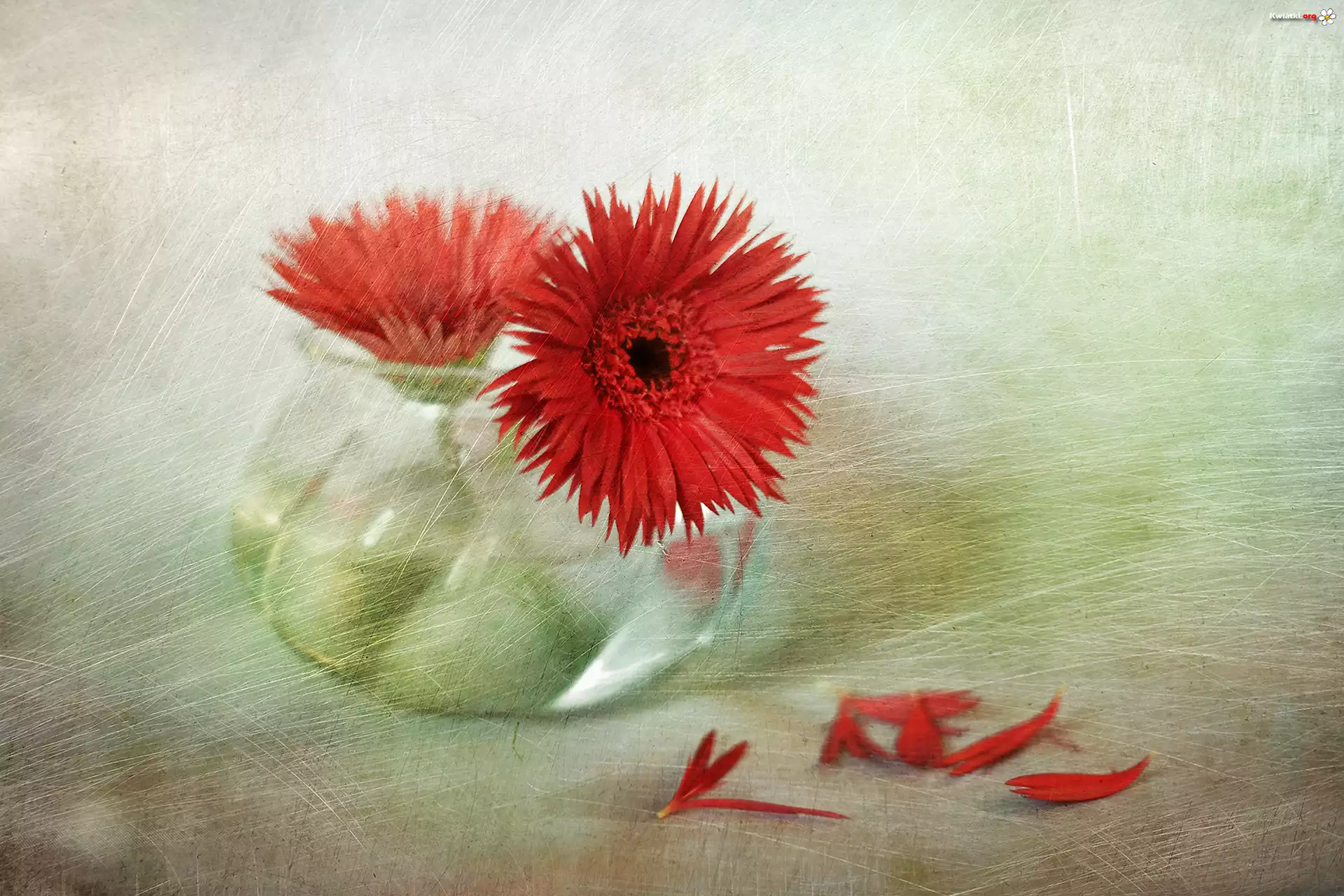 Czerwone, Gerbery, Kwiaty, Wazonik, Grafika - Zdjęcia