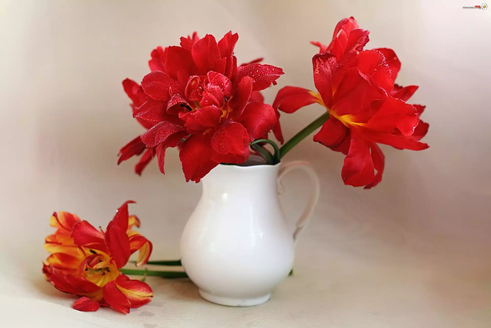 Kwiat Czerwone, Tulipany, Wielopłatkowe, Wazon
