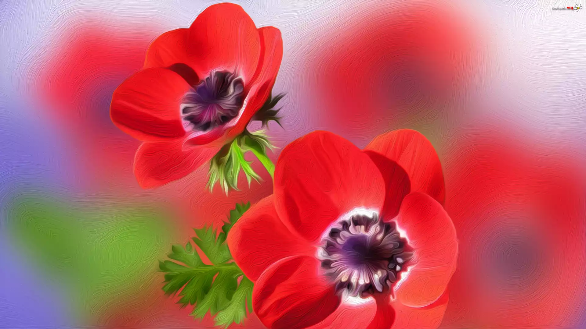 Czerwone, Zawilce wieńcowe, Grafika - Zdjęcia