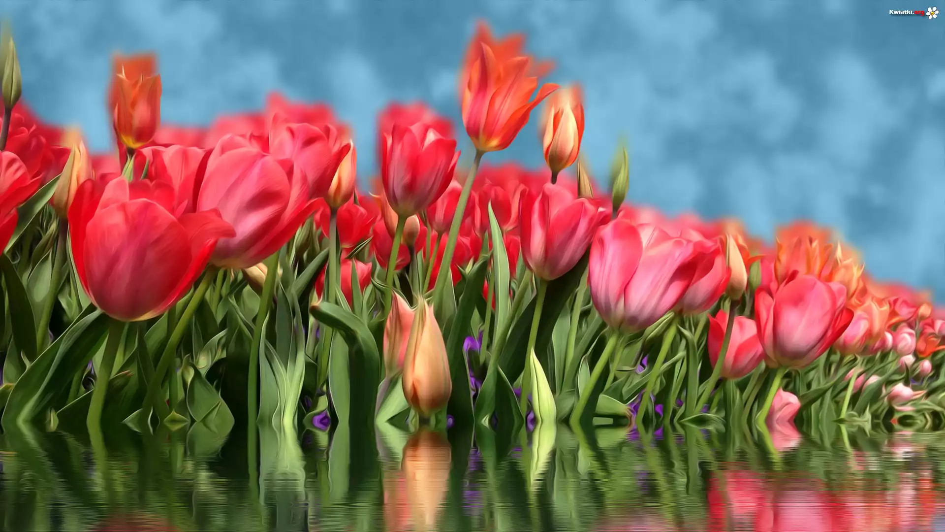 Czerwone, Tulipany, Woda, Odbicie - Zdjęcia