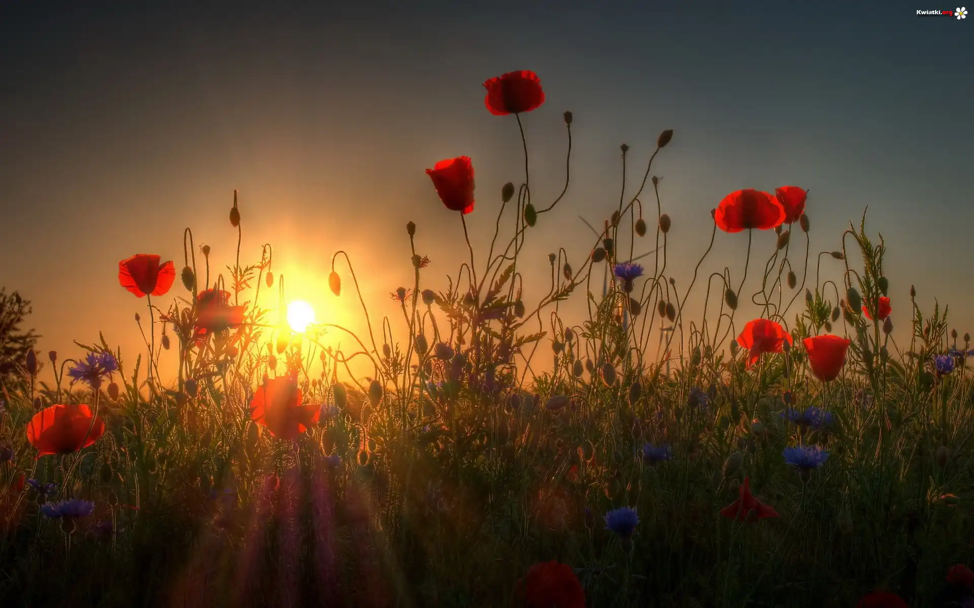 Czerwone, Maki, Wschód słońca - Zdjęcia