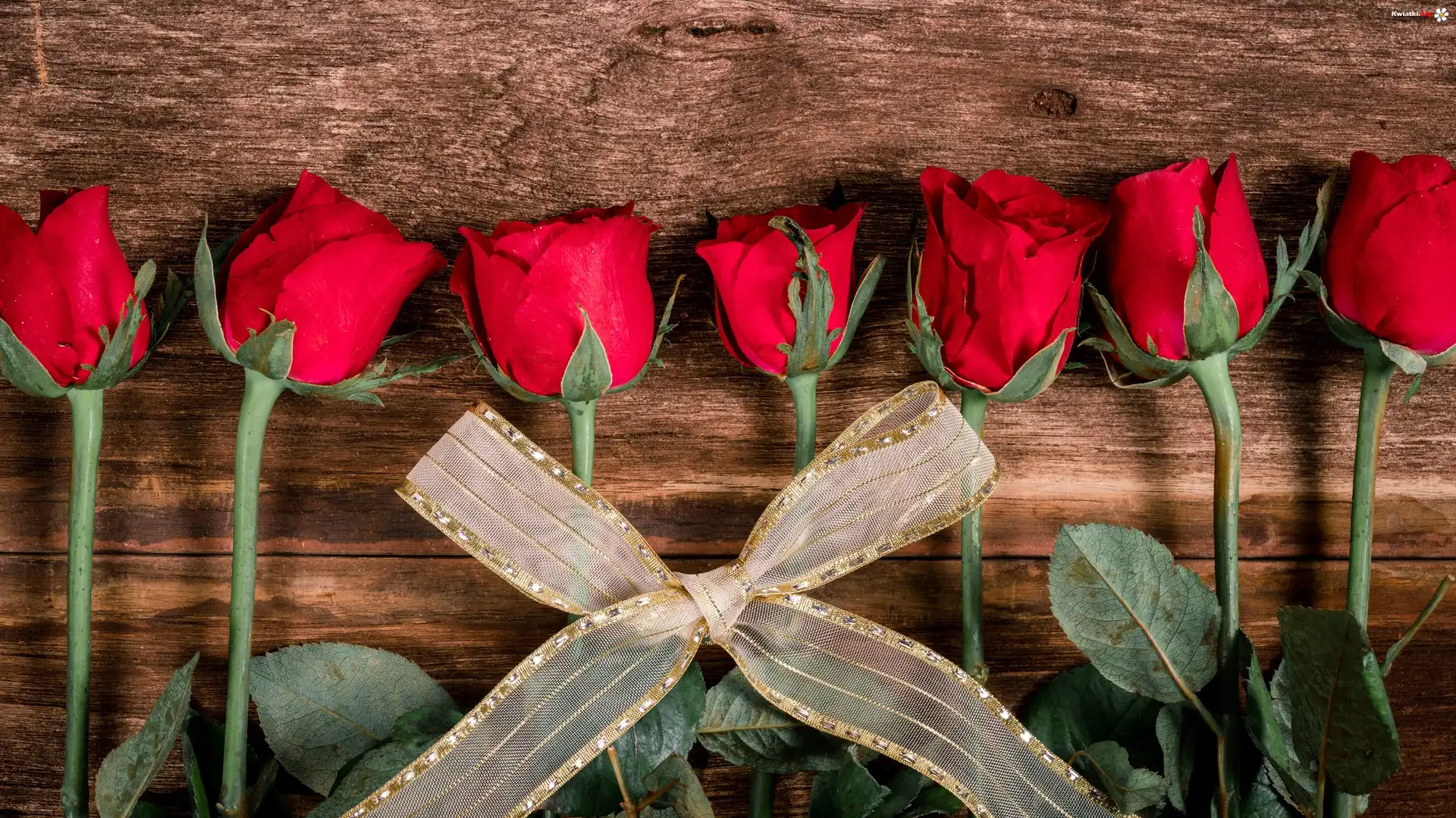 Kwiat Czerwone, Róże, Wstążka, Deski