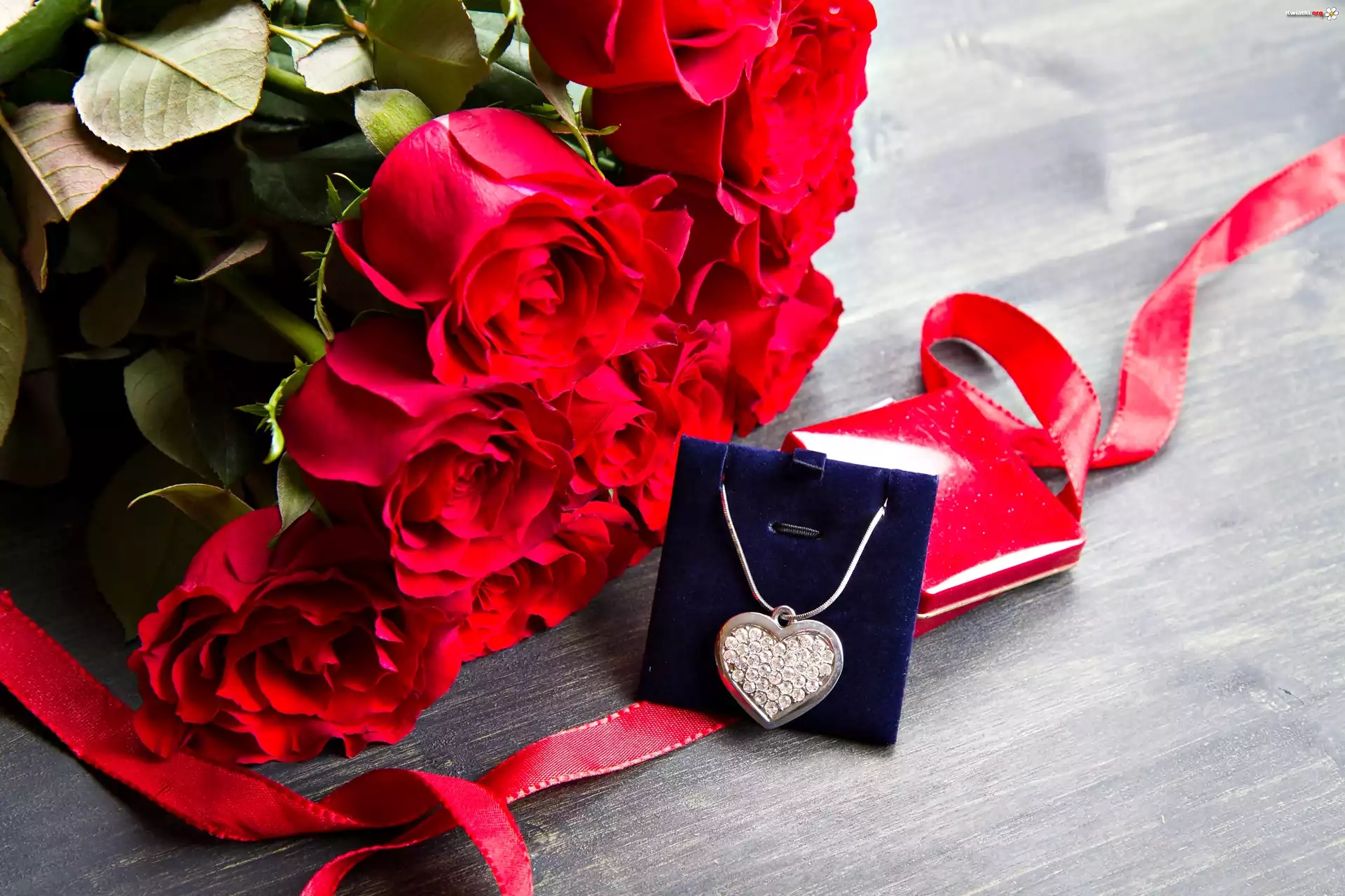 Czerwone, Róże, Wstążka, Walentynki - Zdjęcia