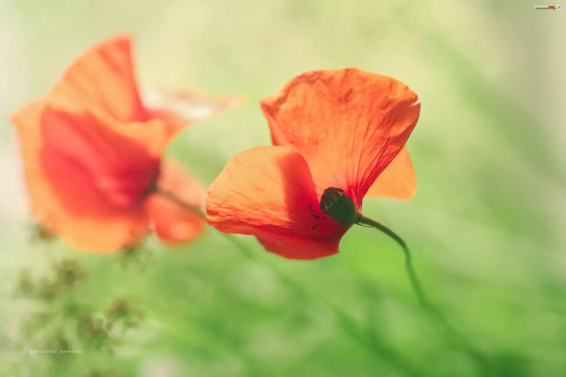 Kwiat Czerwone, Maki, Kwiaty, Zielone, Tło