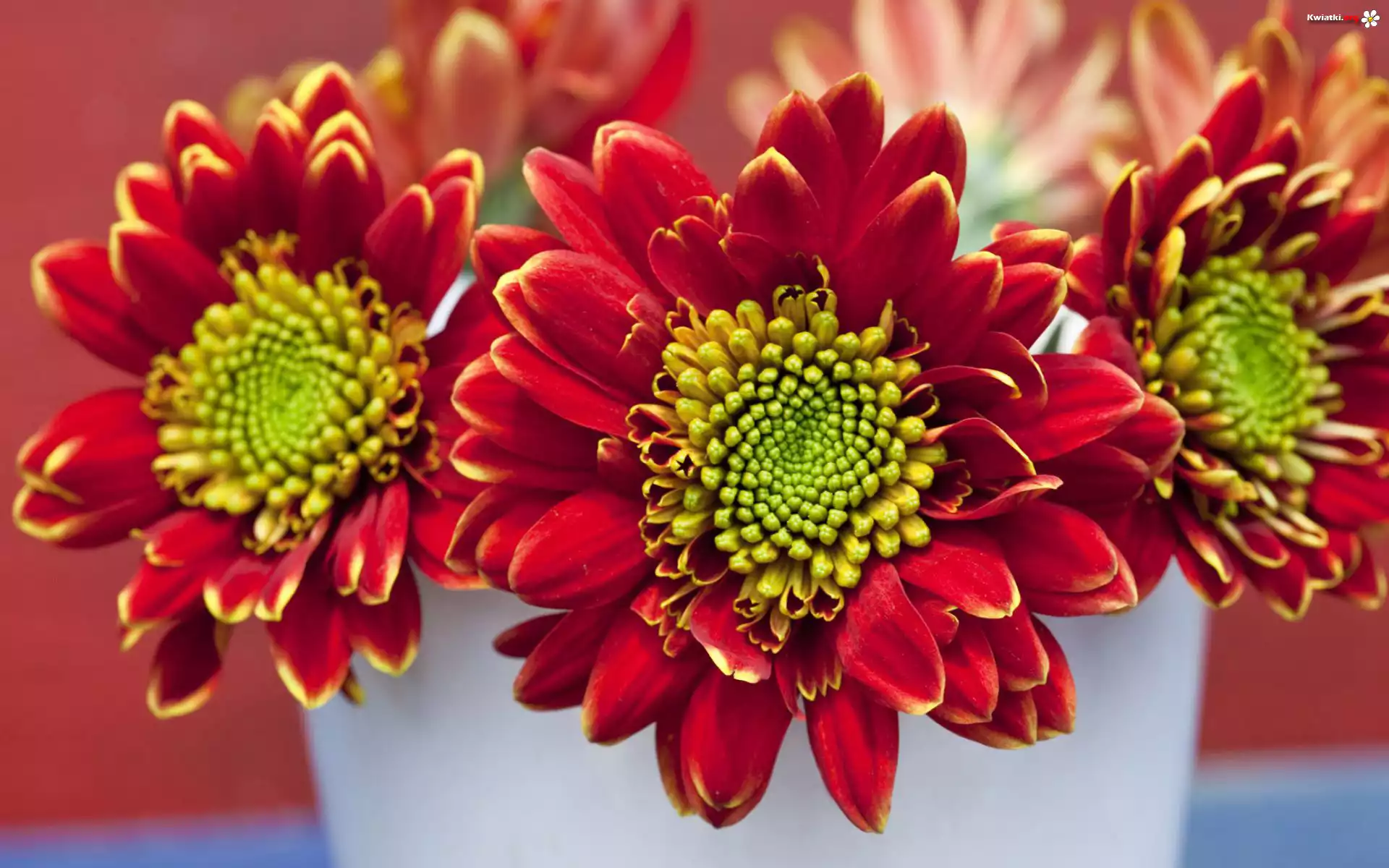 Czerwono, Żółte, Chryzantemy, Biały, Wazon - Zdjęcia