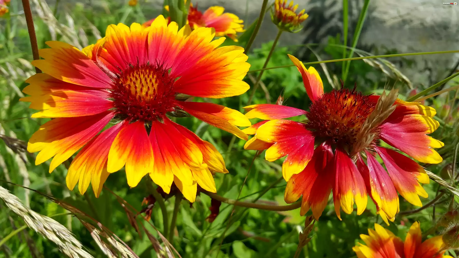 Czerwono, Żółte, Kwiaty, Gailardia oścista - Zdjęcia