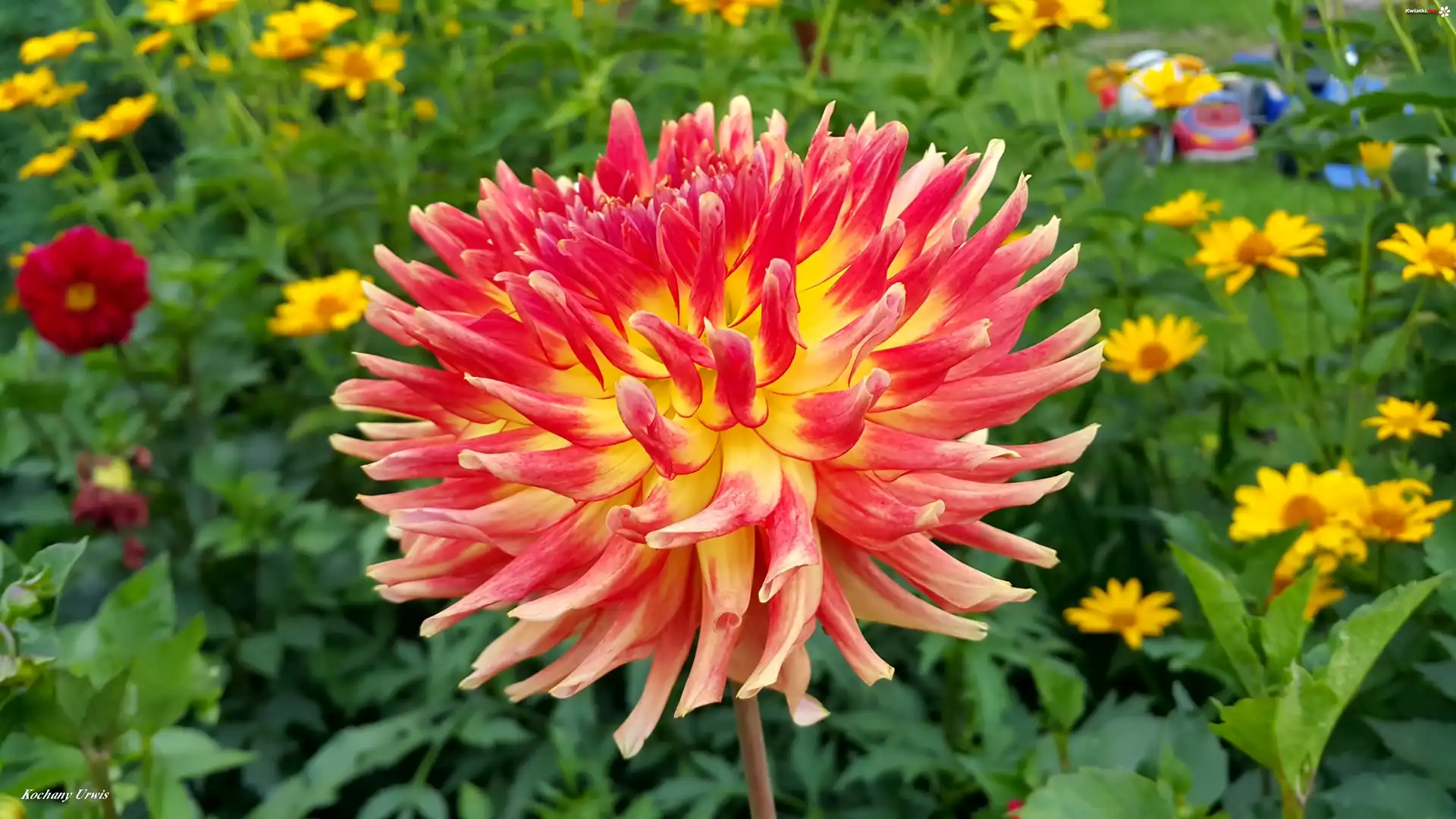 Czerwono, Żółta, Dalia, Żółte, Kwiaty - Zdjęcia