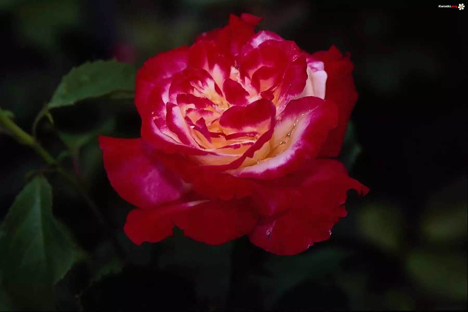 Kwiat Czerwono, Biała, Róża, Łodyga