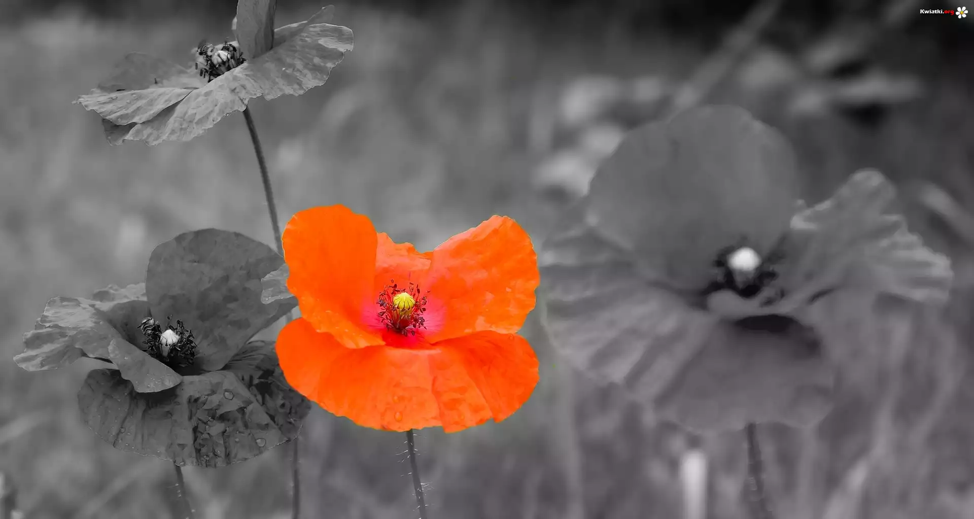 Czerwony, Mak, Czarno-białe, Tło - Zdjęcia